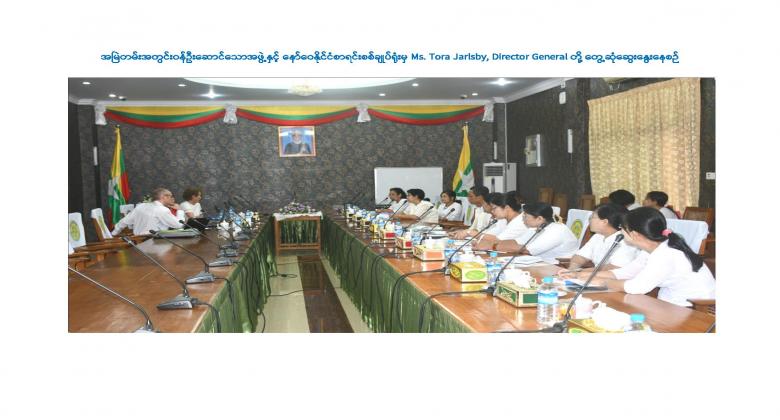 U Maw Than, the Auditor General of the Union, received Ms. Tora Jarlsby, the Director General from the Office of the Auditor General of Norway (OAGN), in the Call Room of the Office of the Auditor General of the Union (OAGM), Nay Pyi Taw at 9:45 a.m on 24th May 2019.