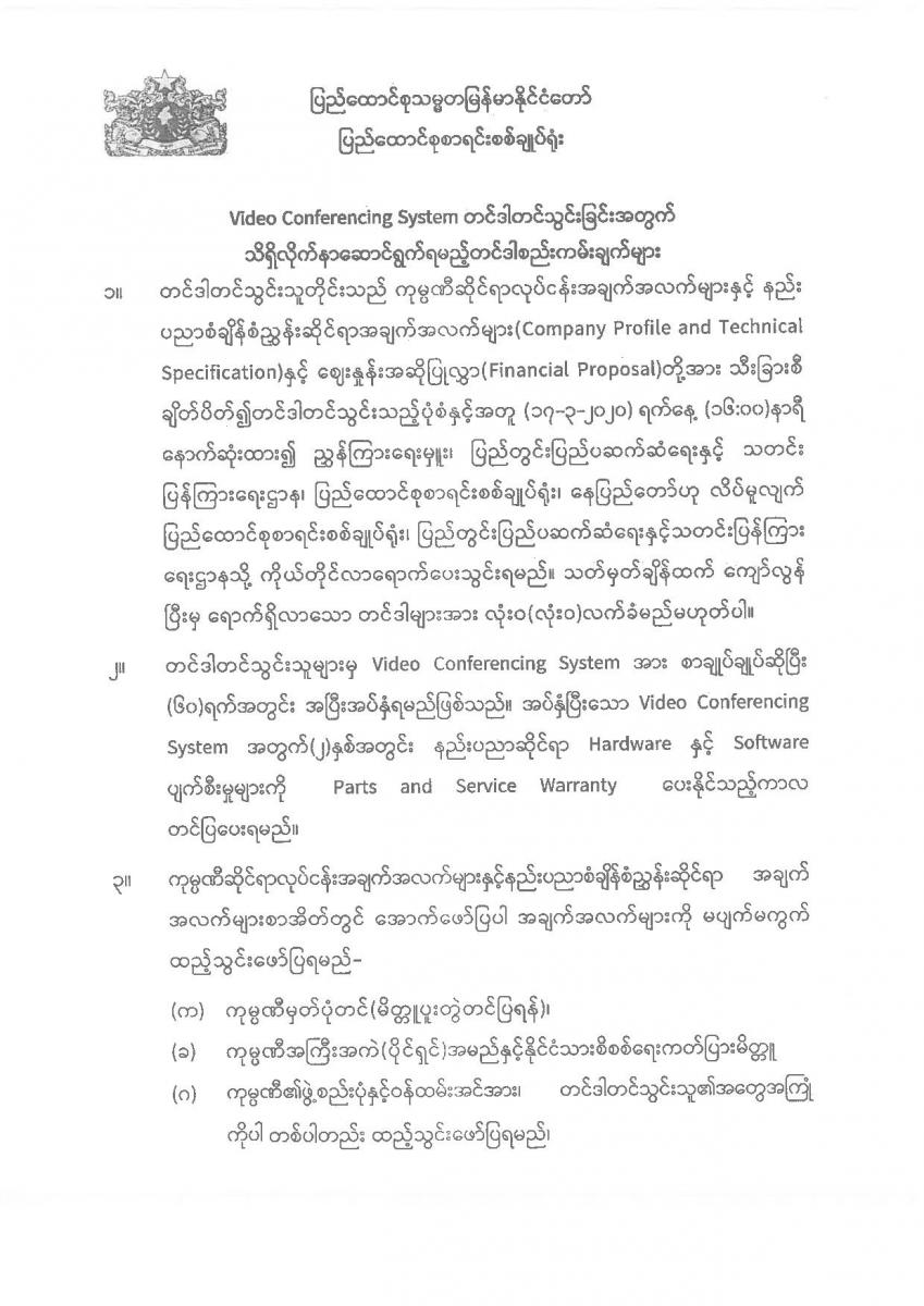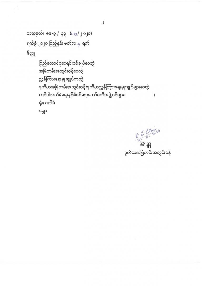 ပြည်ထောင်စုစာရင်းစစ်ချုပ်ရုံး ကြော်ငြာစာအမှတ် (၃/၂၀၂၀) အိတ်ဖွင့်တင်ဒါခေါ်ယူခြင်း