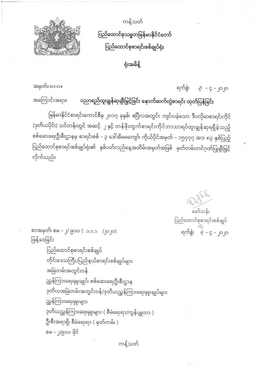 ပညာရည်ထူးချွန်ဆုချီးမြှင့်ခြင်း နောက်ဆက်တွဲစာရင်း ထုတ်ပြန်ခြင်း