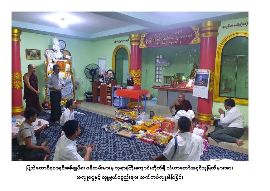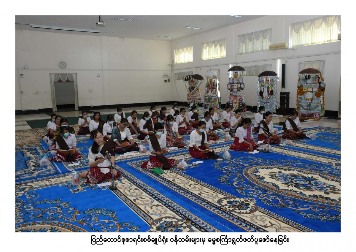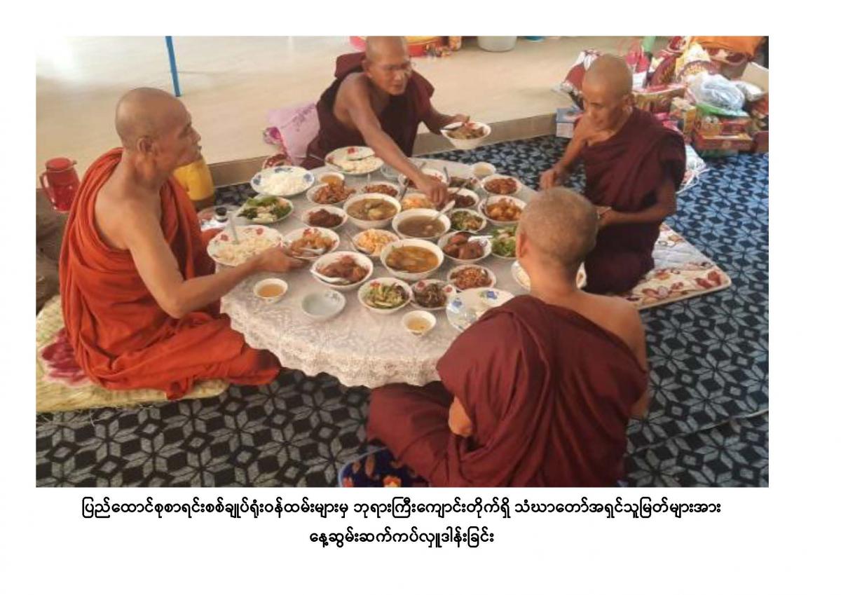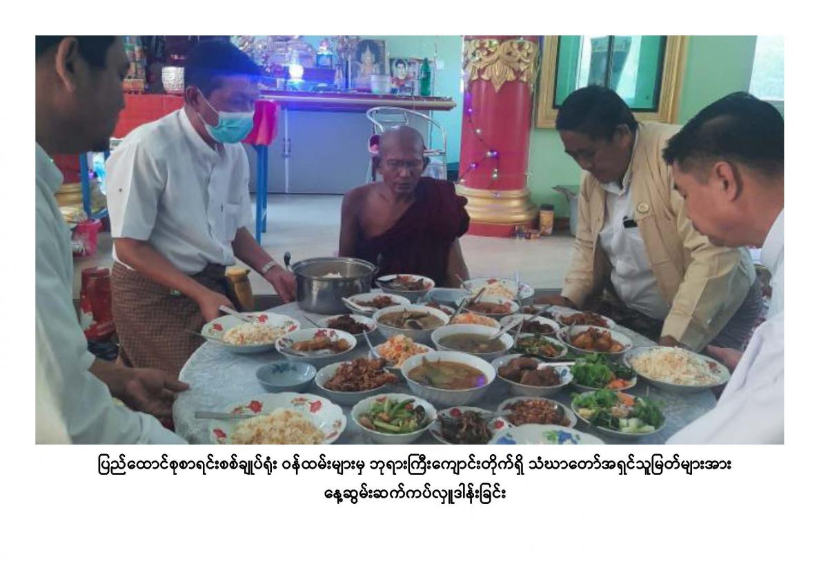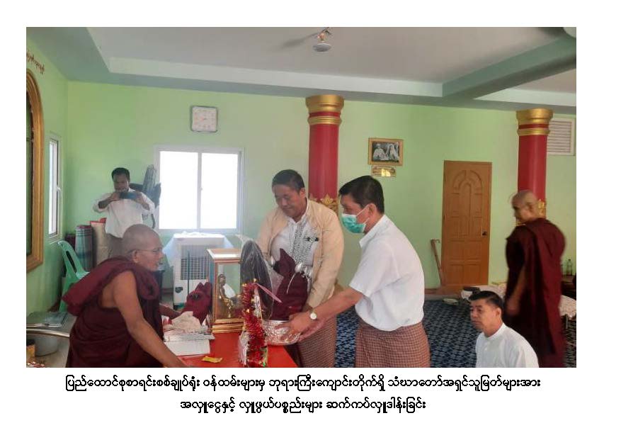 The donation ceremony of Kyats 1,123,000 donated by the Union Auditor General and staff members for the nuns in Visakharponnamigonwai philanthropic nunnery where Buddhist Scriptures were taught was held at Visakharponnamigonwai nunnery in Lewe Township, Naypyitaw, at 9:00 am on 12 November, 2021, and donations were offered to the nuns by the responsible personnel from the Office of the Auditor General of the Union.