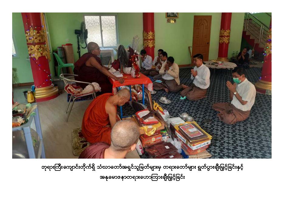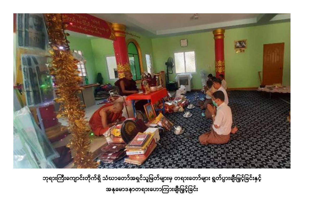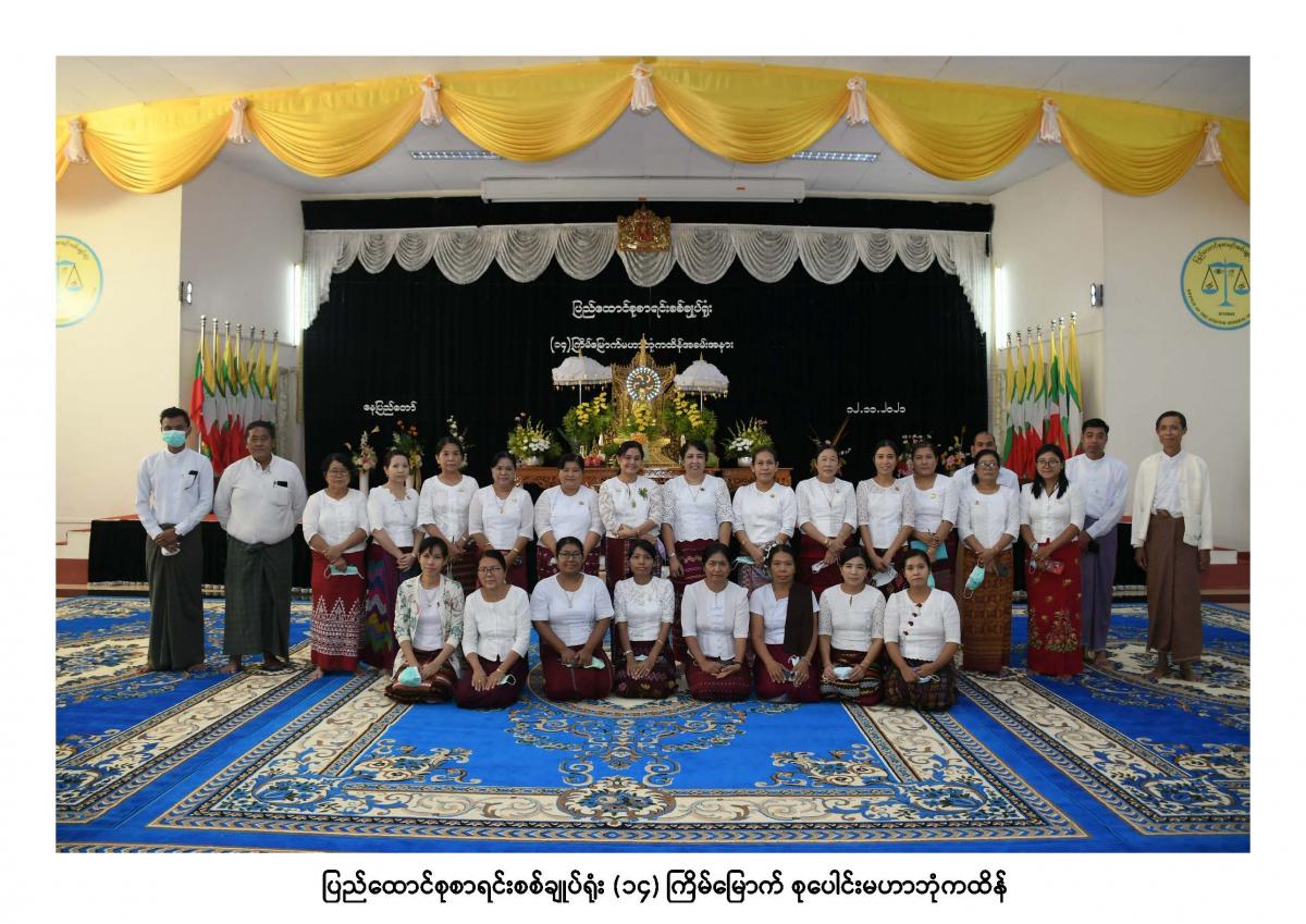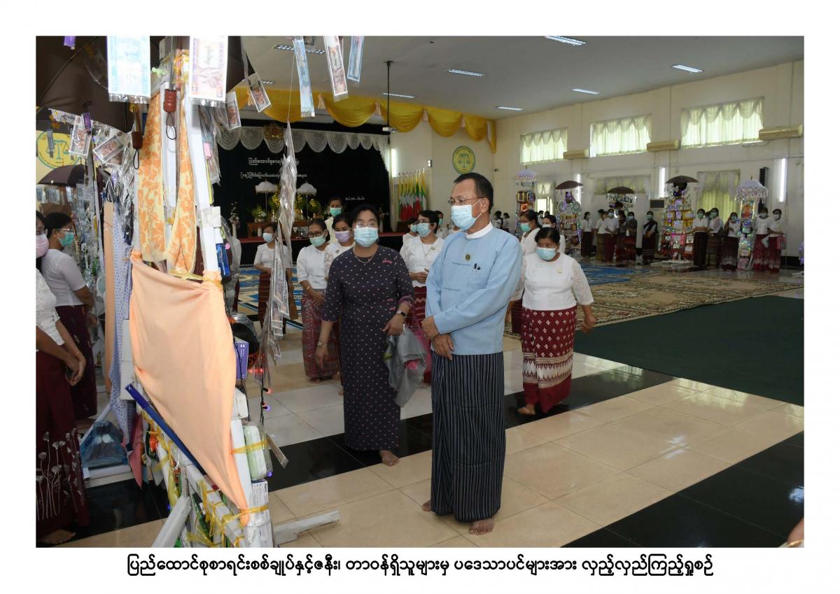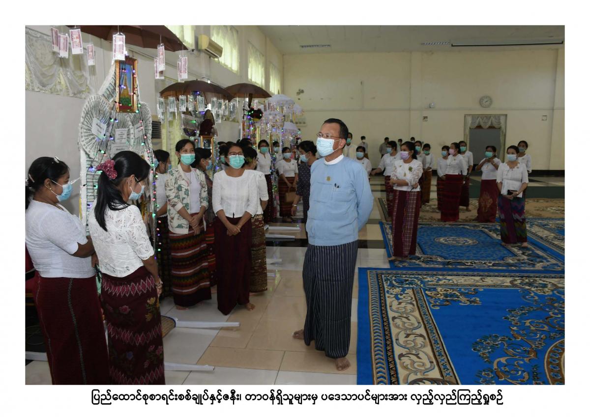 The donation ceremony of Kyats 1,123,000 donated by the Union Auditor General and staff members for the nuns in Visakharponnamigonwai philanthropic nunnery where Buddhist Scriptures were taught was held at Visakharponnamigonwai nunnery in Lewe Township, Naypyitaw, at 9:00 am on 12 November, 2021, and donations were offered to the nuns by the responsible personnel from the Office of the Auditor General of the Union.