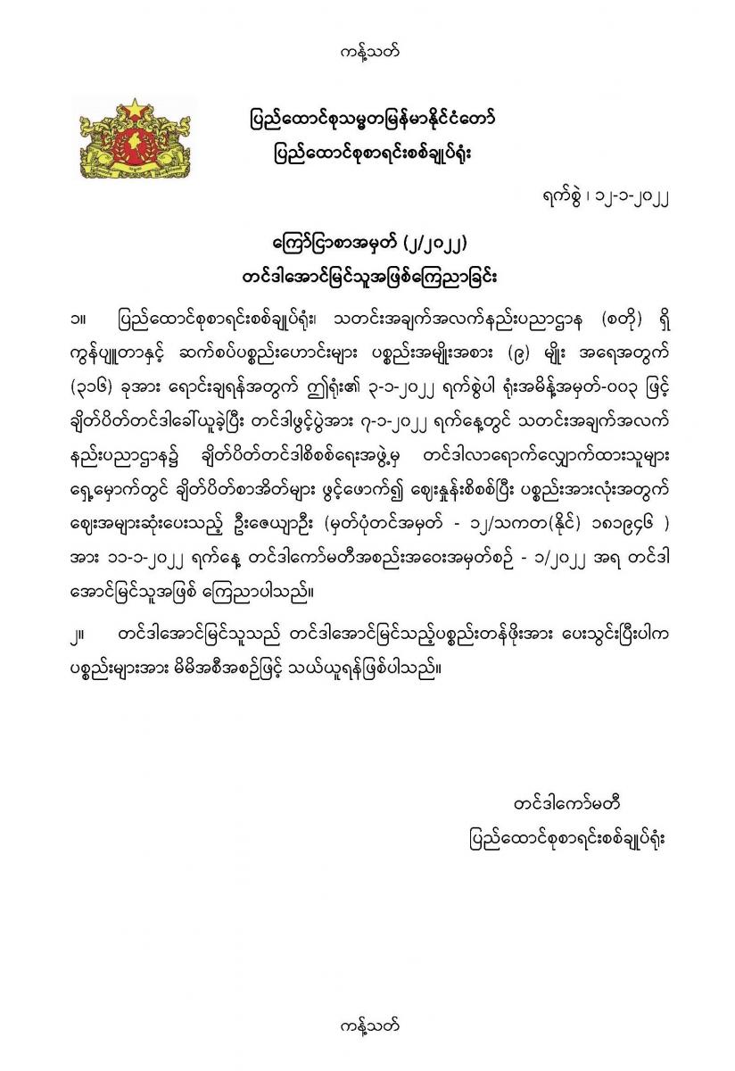 တင်ဒါအောင်မြင်သူအဖြစ်ကြေညာခြင်း