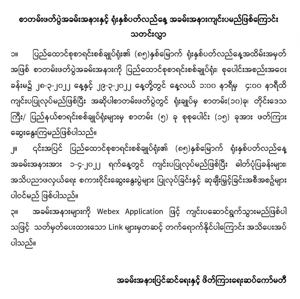 စာတမ်းဖတ်ပွဲအခမ်းအနားနှင့် ရုံးနှစ်ပတ်လည်နေ့ အခမ်းအနားကျင်းပမည်ဖြစ်ကြောင်း သတင်းလွှာ