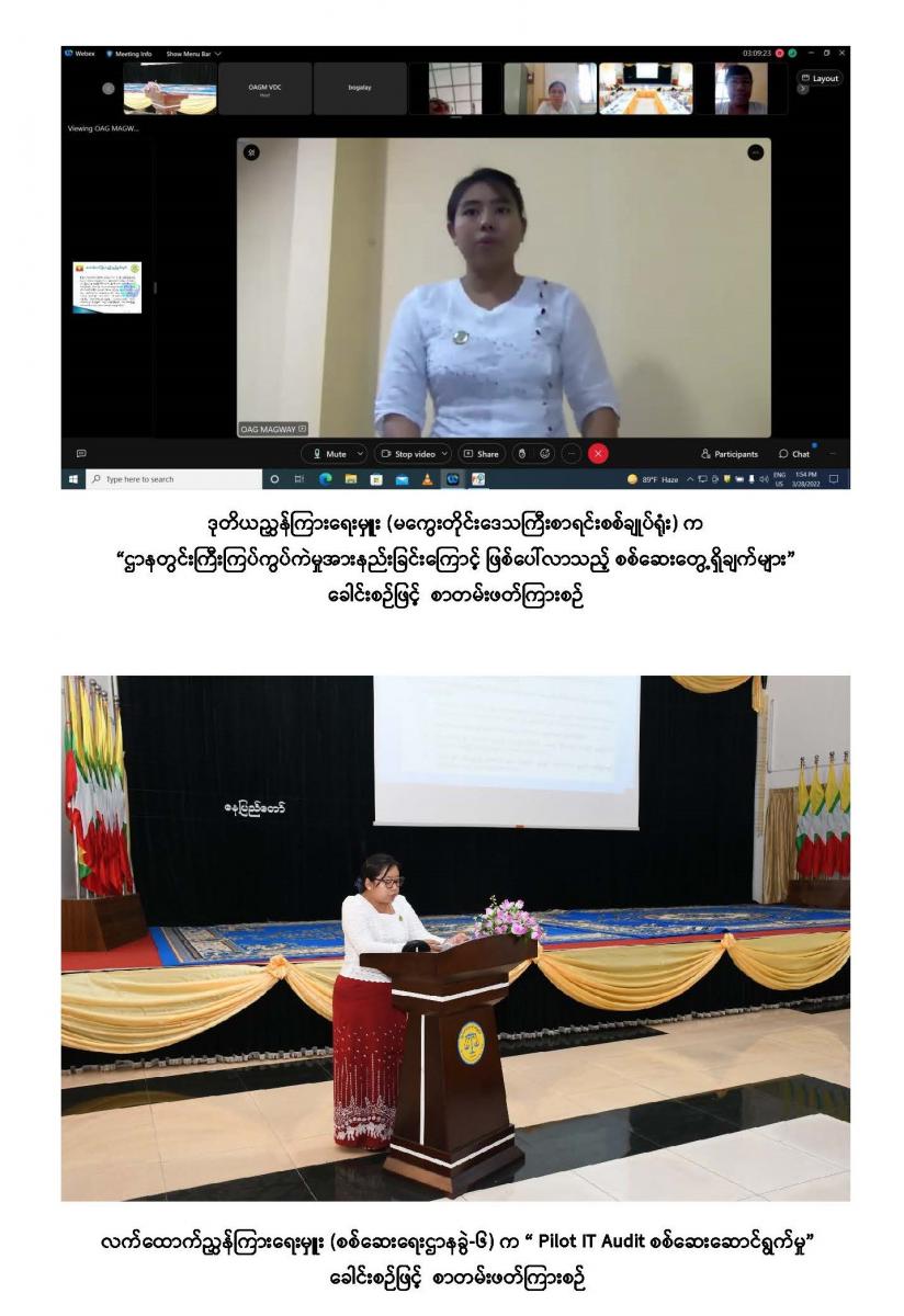 ၂၈-၃-၂၀၂၂ ရက်နေ့ ပြည်ထောင်စုစာရင်းစစ်ချုပ်ရုံး၏ နှစ်ပတ်လည်နေ့ အထိမ်းအမှတ် အကြိုစာတမ်းဖတ်ပွဲအခမ်းအနားကျင်းပခြင်း