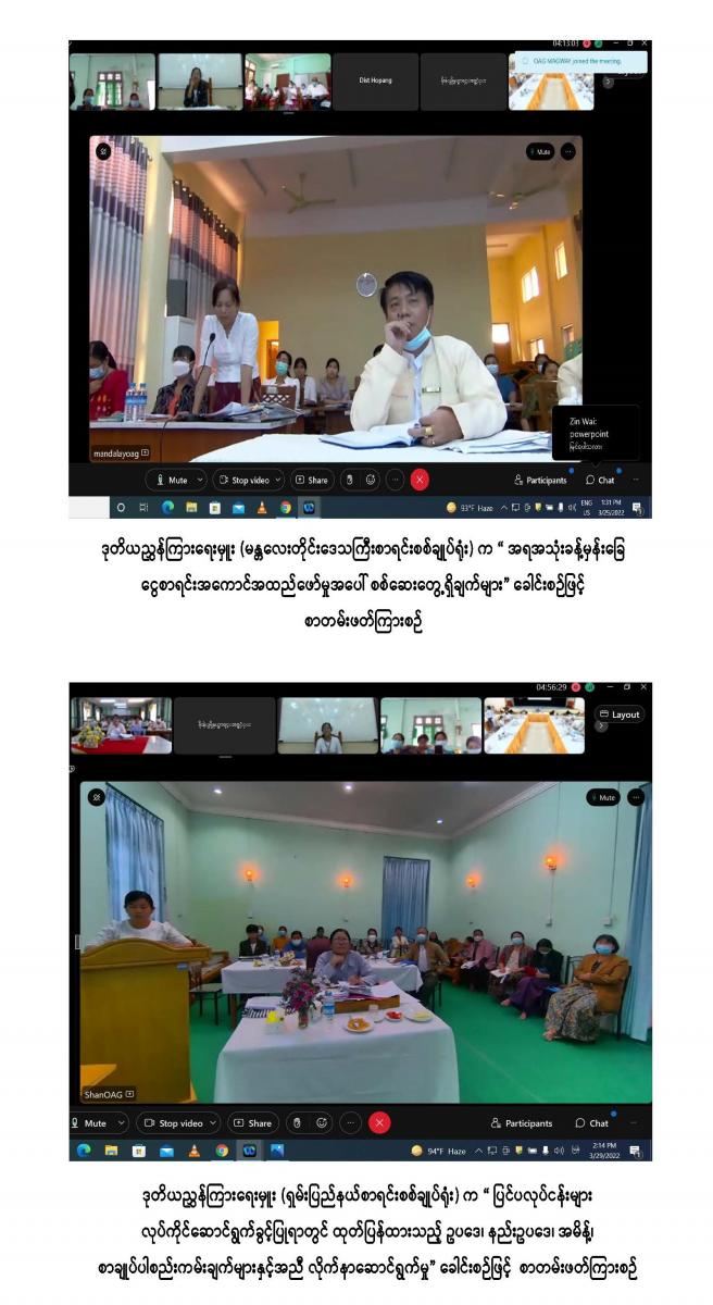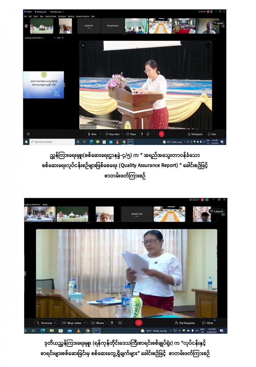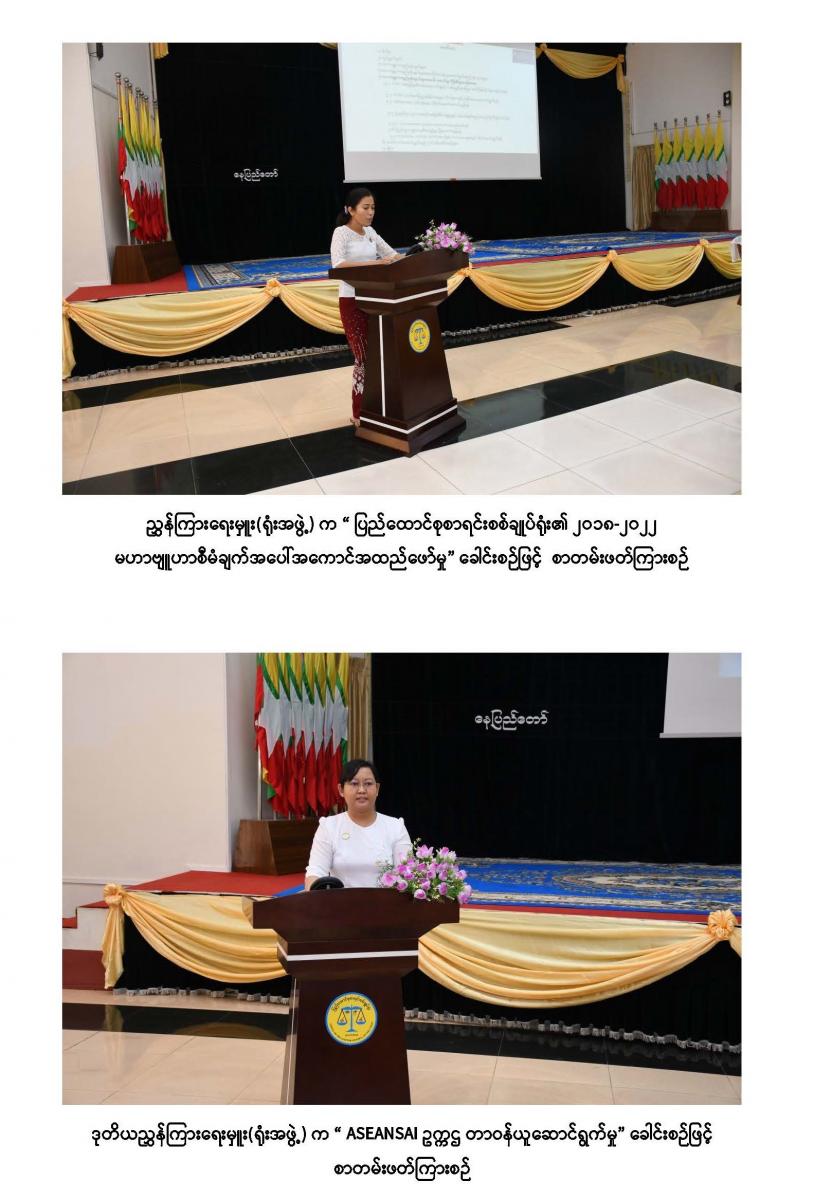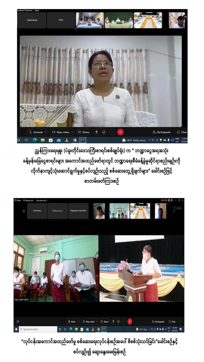 ၂၉-၃-၂၀၂၂ ရက်နေ့ ပြည်ထောင်စုစာရင်းစစ်ချုပ်ရုံး၏ နှစ်ပတ်လည်နေ့ အထိမ်းအမှတ် အကြိုစာတမ်းဖတ်ပွဲ ဒုတိယနေ့အခမ်းအနား ဆက်လက်ကျင်းပခြင်း