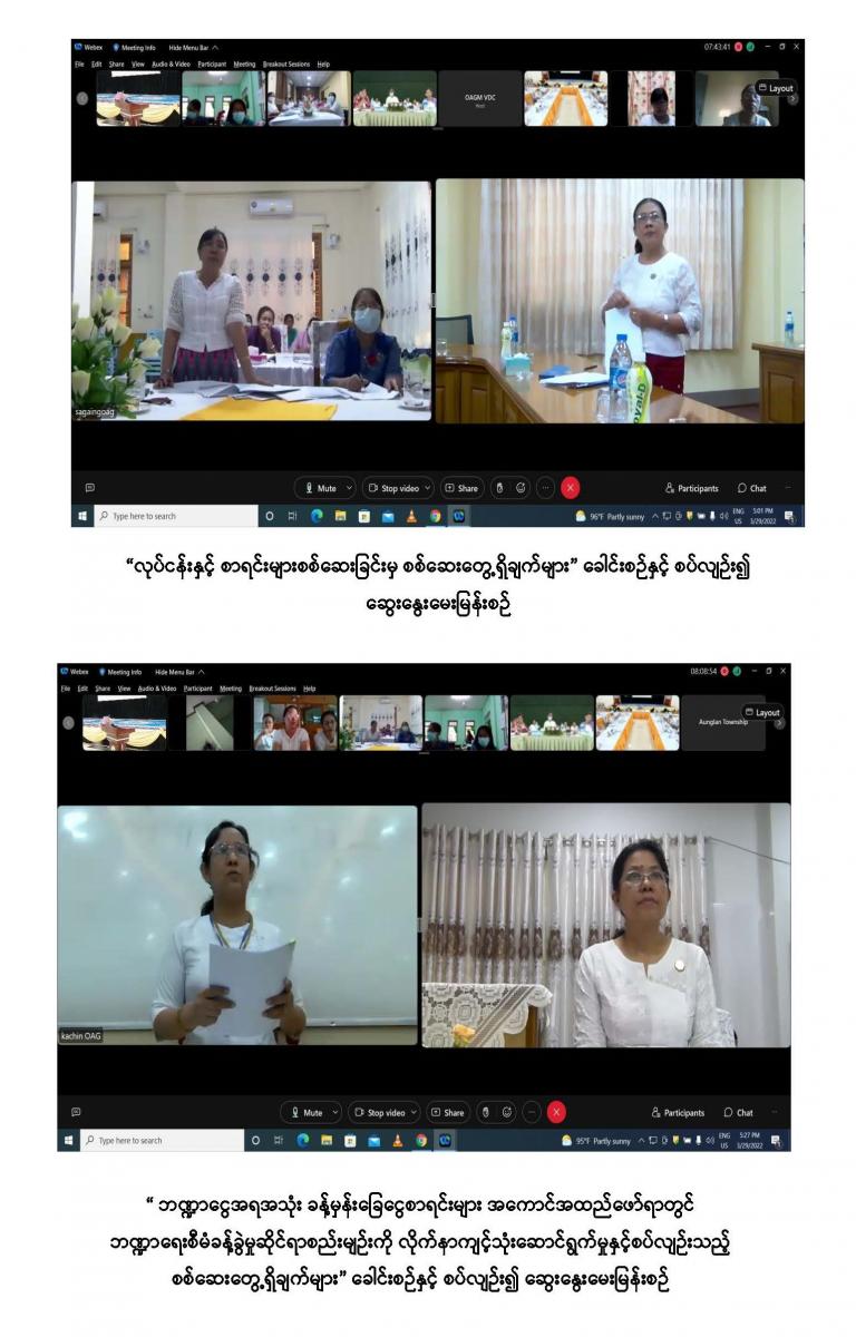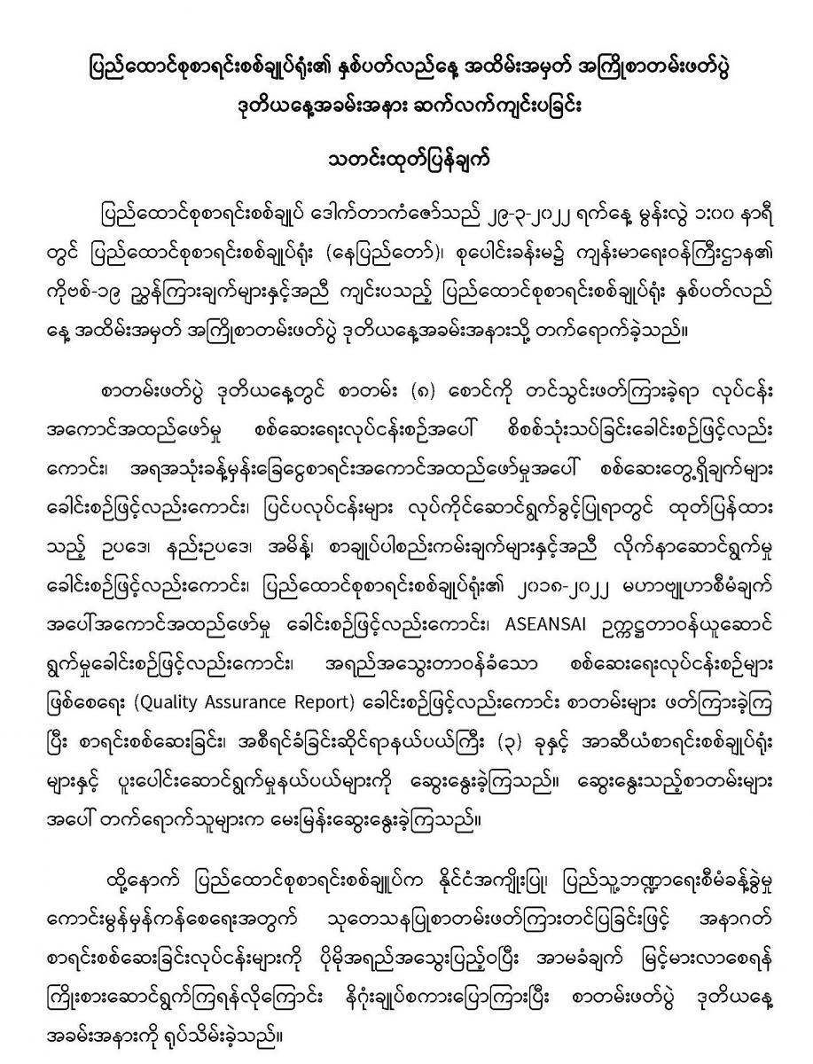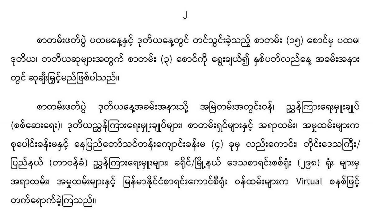 ၂၉-၃-၂၀၂၂ ရက်နေ့ ပြည်ထောင်စုစာရင်းစစ်ချုပ်ရုံး၏ နှစ်ပတ်လည်နေ့ အထိမ်းအမှတ် အကြိုစာတမ်းဖတ်ပွဲ ဒုတိယနေ့အခမ်းအနား ဆက်လက်ကျင်းပခြင်း