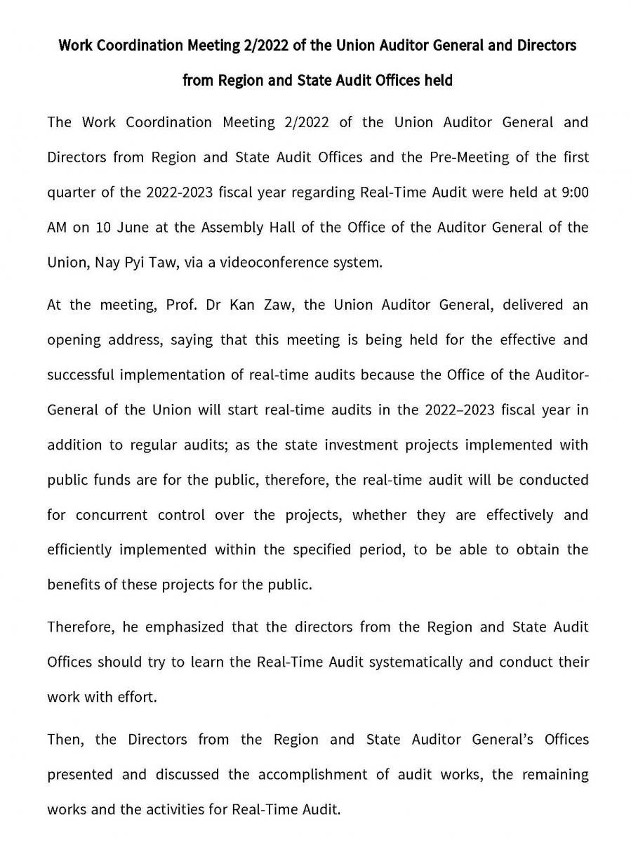 Work Coordination Meeting 2/2022 of the Union Auditor General and Directors from Region and State Audit Offices held