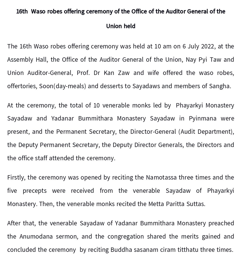 16th Waso robes offering ceremony of the Office of the Auditor General of the Union held