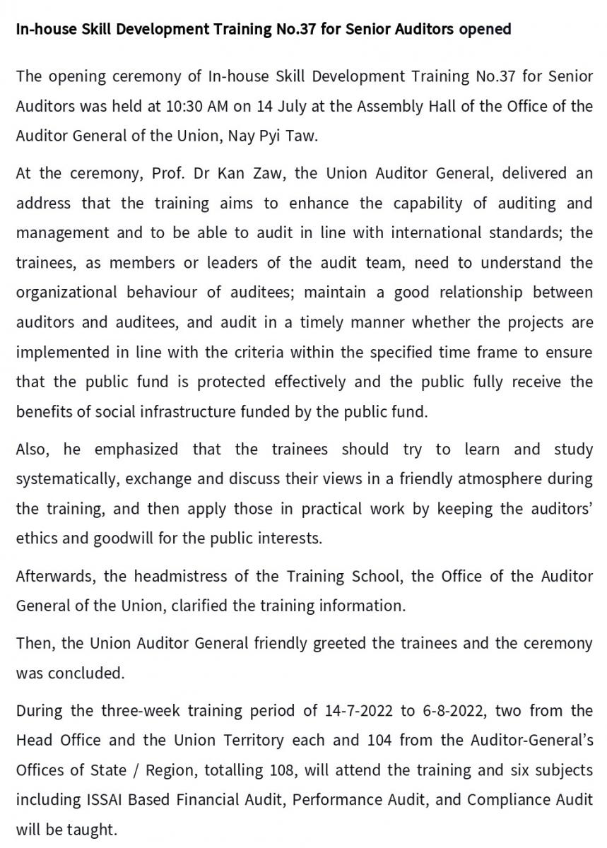 In-house Skill Development Training No.37 for Senior Auditors opened