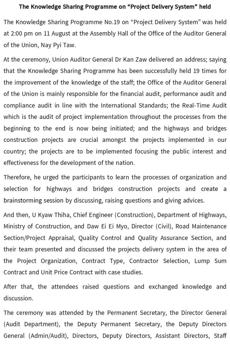 The Knowledge Sharing Programme on “Project Delivery System” held