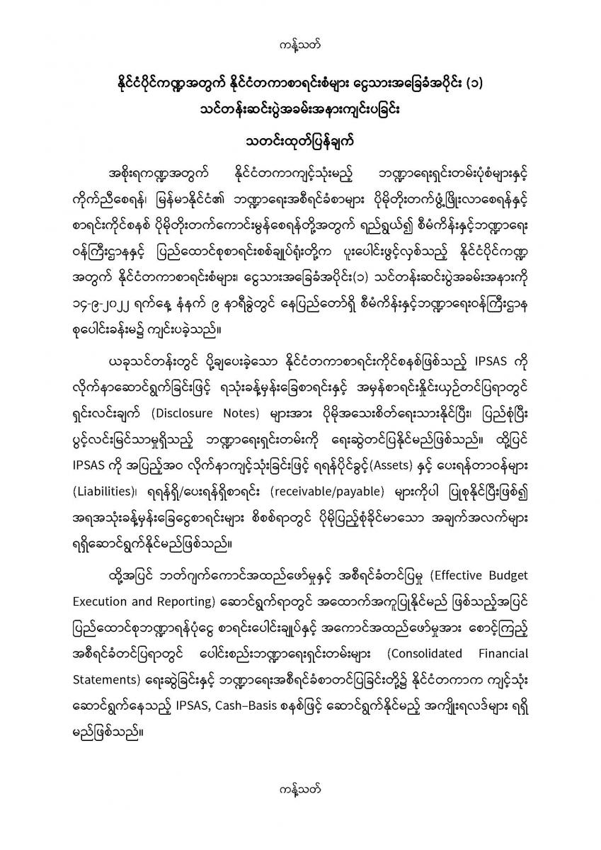 ၁၄-၉-၂၀၂၂ ရက်နေ့တွင် နိုင်ငံပိုင်ကဏ္ဍအတွက် နိုင်ငံတကာစာရင်းစံများ ငွေသားအခြေခံအပိုင်း (၁) သင်တန်းဆင်းပွဲအခမ်းအနားကျင်းပခြင်း