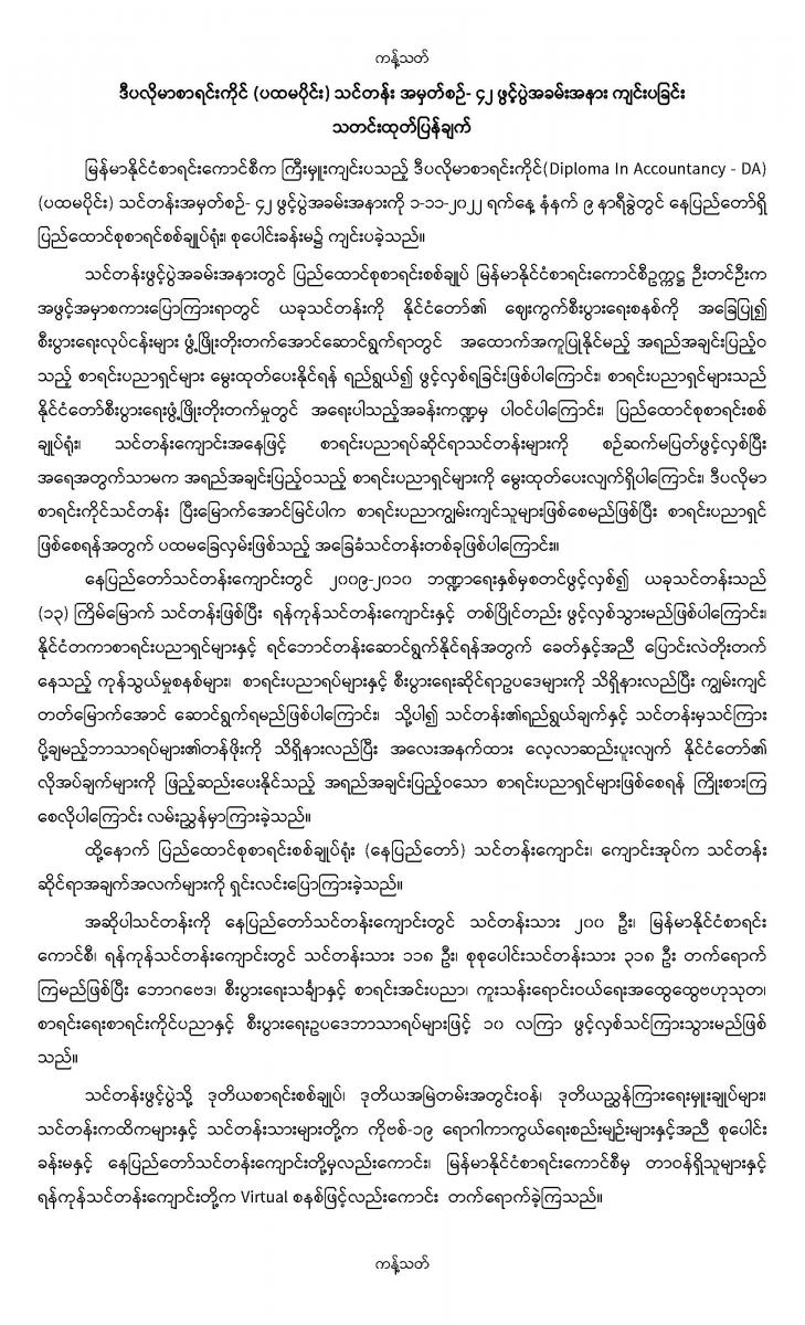 ၁-၁၁-၂၀၂၂ ရက်နေ့တွင် ဒီပလိုမာစာရင်းကိုင် (ပထမပိုင်း) သင်တန်း အမှတ်စဉ်- ၄၂ ဖွင့်ပွဲအခမ်းအနား ကျင်းပခြင်း