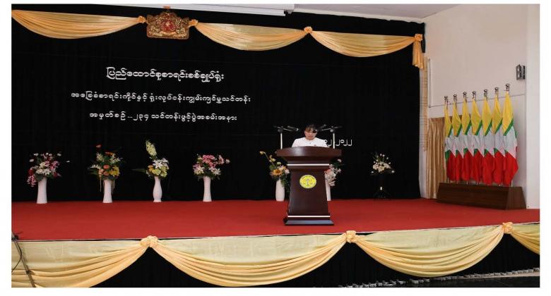 ပြည်ထောင်စုစာရင်းစစ်ချုပ်ရုံး၊ နေပြည်တော်သင်တန်းကျောင်းတွင် ဖွင့်လှစ်သည့် အခြေခံစာရင်းကိုင်နှင့် ရုံးလုပ်ငန်းကျွမ်းကျင်မှုသင်တန်းအမှတ်စဉ်-၂၃၄ သင်တန်းဖွင့်ပွဲအခမ်းအနားကို ၁-၁၂-၂၀၂၂ ရက်နေ့ မွန်းလွဲ ၂ နာရီတွင် နေပြည်တော်ရှိ ပြည်ထောင်စုစာရင်းစစ်ချုပ်ရုံး၊ စုပေါင်းခန်းမ၌ ကျင်းပရာ ပြည်ထောင်စုစာရင်းစစ်ချုပ် ဦးတင်ဦး တက်ရောက်၍ သင်တန်းဖွင့် အမှာစကားပြောကြားခဲ့သည်။