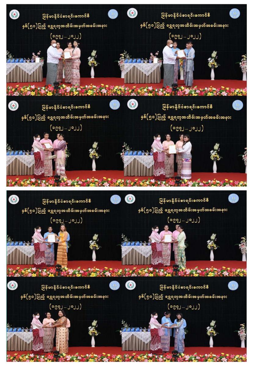 ထို့နောက် အခမ်းအနား ဒုတိယပိုင်းကို ဆက်လက်ကျင်းပရာ လက်မှတ်ရပြည်သူ့ စာရင်းကိုင်သင်တန်း (ပထမပိုင်း၊ ဒုတိယပိုင်း) နှင့် ဒီပလိုမာစာရင်းကိုင်သင်တန်း (ပထမပိုင်း၊ ဒုတိယပိုင်း) တို့တွင် ထူးချွန်စွာအောင်မြင်သူများနှင့် ဆုရရှိသောစာတမ်းရှင်များအား ဆုချီးမြှင့်ခြင်း၊ မဂ္ဂဇင်းကလောင်ရှင်များ၊ တေးသီချင်းသီကုံးစပ်ဆိုသူ၊ မြန်မာနိုင်ငံစာရင်းကောင်စီနှစ် (၅၀)ပြည့် ဆောင်ပုဒ်ရေးသားသူ၊ Logo ဒီဇိုင်းရေးဆွဲသူနှင့် အခမ်းအနားကျင်းပရေး ဦးစီးကော်မတီ၊ ဆပ်ကော်မတီအသီးသီးတို့အား ဂုဏ်ပြုမှတ်တမ်းလွှာနှင့် အထိမ်းအမှတ်လက်ဆောင်များ ပေးအပ်ခဲ့သည်။