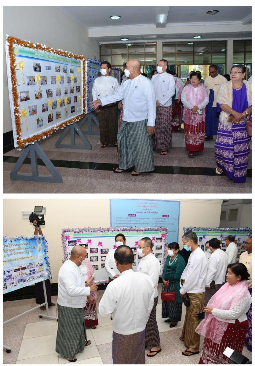 ယင်းနောက် ပြည်ထောင်စုစာရင်းစစ်ချုပ်နှင့် ဖိတ်ကြားထားသည့် ဧည့်သည်တော်များသည် မြန်မာနိုင်ငံစာရင်းကောင်စီ နှစ် (၅၀) ပြည့် ရွှေရတုအထိမ်းအမှတ်အနေဖြင့် ခင်းကျင်းပြသထားသည့် စာရင်းစစ်ချုပ်ရုံးသမိုင်းကြောင်းနှင့်မှတ်တမ်းများ ဓာတ်ပုံပြခန်းအား လှည့်လည်ကြည့်ရှုခဲ့ကြသည်။