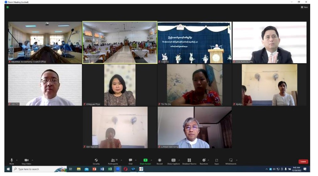 ပြည်ထောင်စုစာရင်းစစ်ချုပ်ရုံး၊ နေပြည်တော်သင်တန်းကျောင်းတွင် မြန်မာနိုင်ငံစာရင်းကောင်စီမှ ကြီးမှူးဖွင့်လှစ်ခဲ့သည့် ဒီပလိုမာစာရင်းကိုင် (Diploma in Accountancy - DA) (ဒုတိယပိုင်း) သင်တန်း၊ အမှတ်စဉ် - ၄၀ သင်တန်းဆင်းပွဲအခမ်းအနားကို ၂၈-၁၂-၂၀၂၂ ရက်နေ့ နံနက် ၉ နာရီခွဲတွင် နေပြည်တော်ရှိ ပြည်ထောင်စုစာရင်းစစ်ချုပ်ရုံး၊ စုပေါင်းခန်းမ၌ ကျင်းပရာ ပြည်ထောင်စုစာရင်းစစ်ချုပ် မြန်မာနိုင်ငံစာရင်းကောင်စီဥက္ကဋ္ဌ ဦးတင်ဦး တက်ရောက်၍ သင်တန်းဆင်းအမှာစကား ပြောကြားခဲ့သည်။