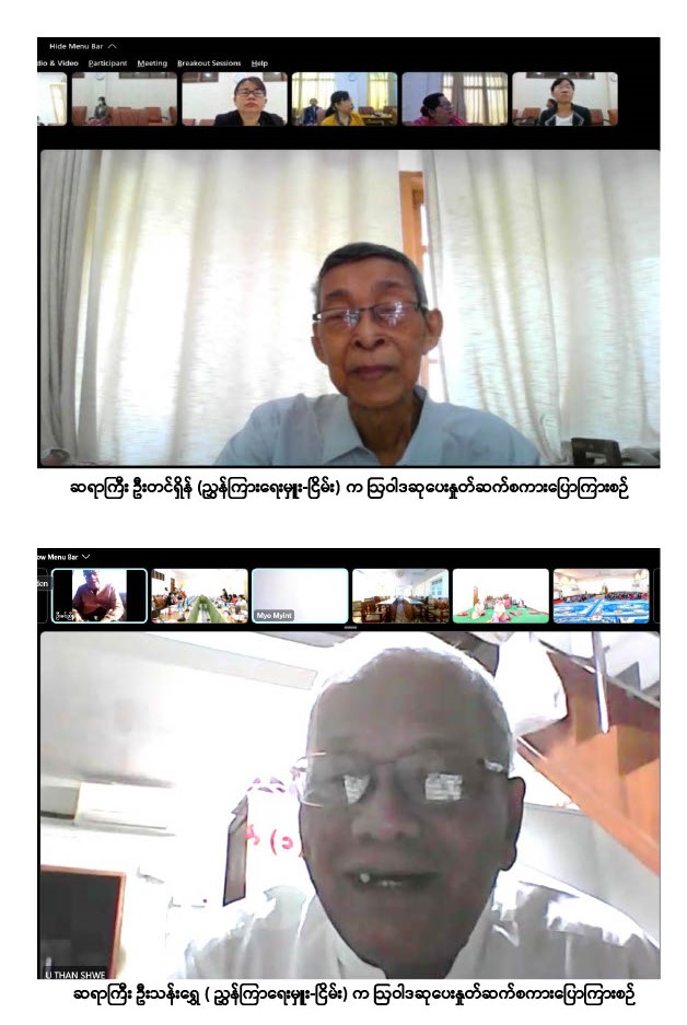 ထို့နောက် ပြည်ထောင်စုစာရင်းစစ်ချုပ်ရုံးဝန်ထမ်းများကိုယ်စား အမြဲတမ်းအတွင်းဝန် ဒေါ်ခိုင်ခိုင်အောင်က ကျေးဇူးတင်စကားပြောကြားခဲ့သည်။
