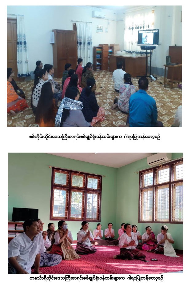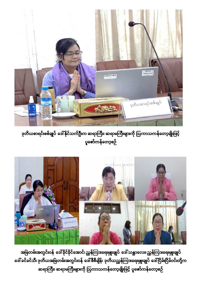 ပြည်ထောင်စုစာရင်းစစ်ချုပ်ရုံးမှ ကြီးမှူးကျင်းပသော အငြိမ်းစား ပြည်ထောင်စုစာရင်းစစ်ချုပ်များ၊ ဒုတိယစာရင်းစစ်ချုပ်နှင့် တာဝန်ထမ်းဆောင်ခဲ့ကြသည့် တိုင်းဒေသကြီး/ ပြည်နယ်စာရင်းစစ်ချုပ်များ၊ ယခင်စာရင်းစစ်ရုံးအဆက်ဆက်တွင် တာဝန်ထမ်းဆောင်ခဲ့ကြသည့် ရုံးအကြီးအကဲများ၊ အသက် (၇၅) နှစ်နှင့်အထက်(ဒုတိယညွှန်ကြားရေးမှူးနှင့်အထက်) သက်ကြီးဝါကြီးဆရာသမားများအား ပူဇော်ကန်တော့သည့်အခမ်းအနားကို ၆ - ၁ - ၂၀၂၃ ရက်နေ့ နံနက် ၉ နာရီတွင် ပြည်ထောင်စုစာရင်းစစ်ချုပ်ရုံး၊ အစည်းအဝေးခန်းမ၌ Virtual System ဖြင့် ကျင်းပခဲ့သည်။
