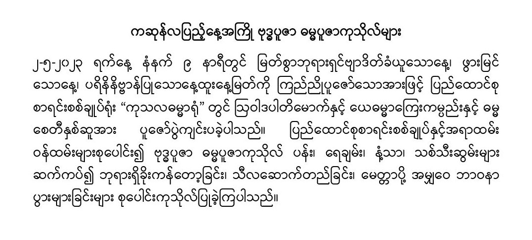 ၂-၅-၂၀၂၃ ရက်နေ့တွင် ကဆုန်လပြည့်နေ့အကြို ဗုဒ္ဓပူဇာ ဓမ္မပူဇာကုသိုလ်များ