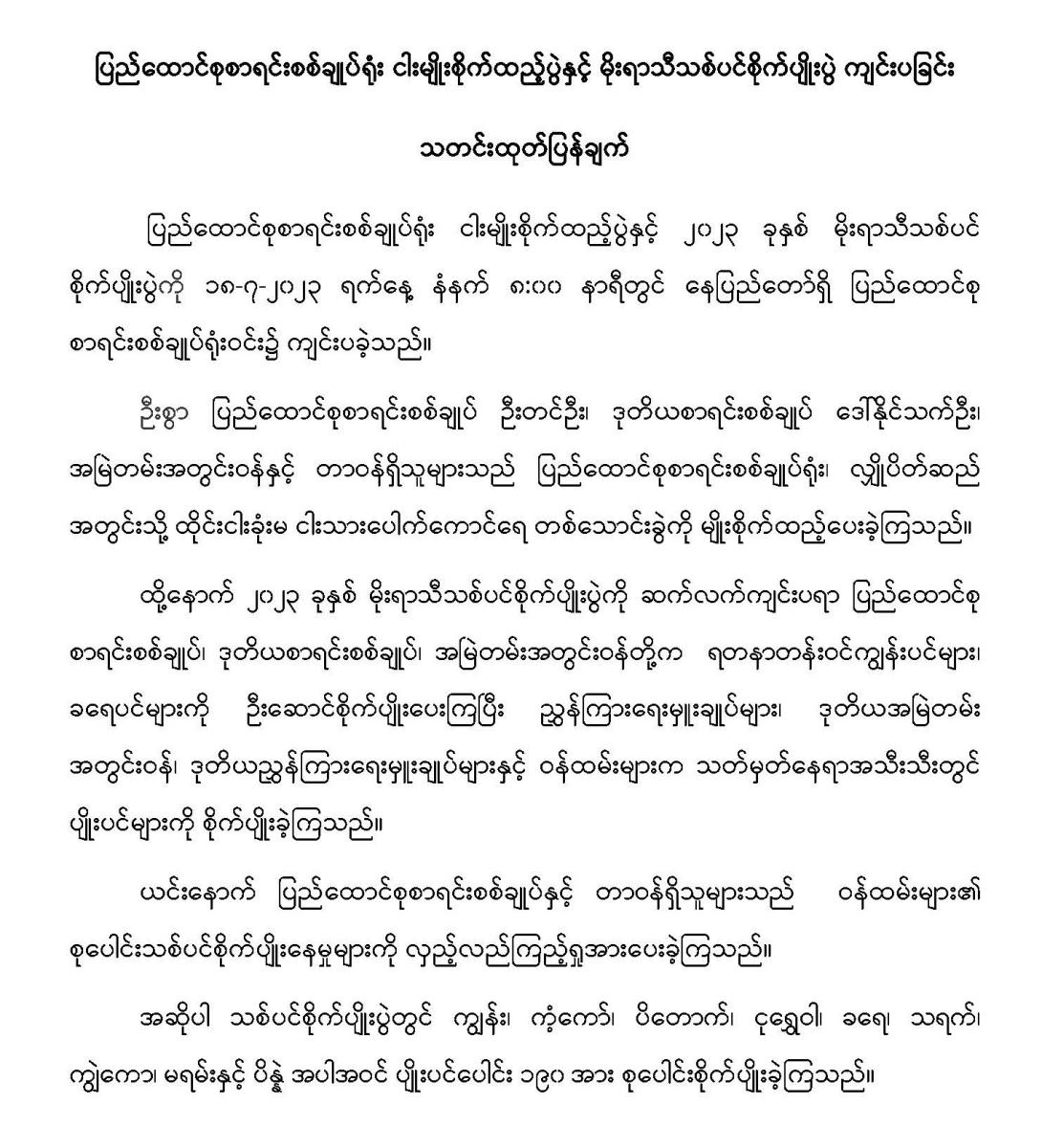၁၈-၇-၂၀၂၃ ရက်နေ့တွင် ပြည်ထောင်စုစာရင်းစစ်ချုပ်ရုံး ငါးမျိုးစိုက်ထည့်ပွဲနှင့် မိုးရာသီသစ်ပင်စိုက်ပျိုးပွဲ ကျင်းပခြင်း