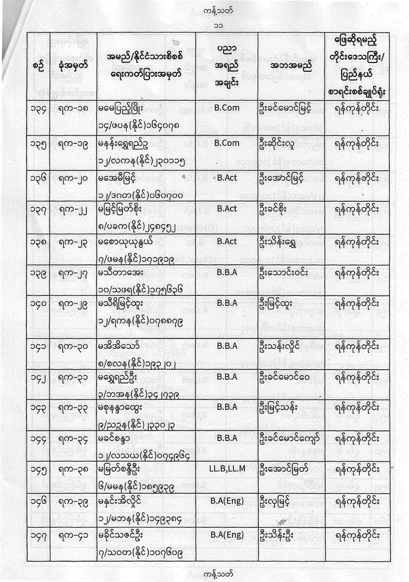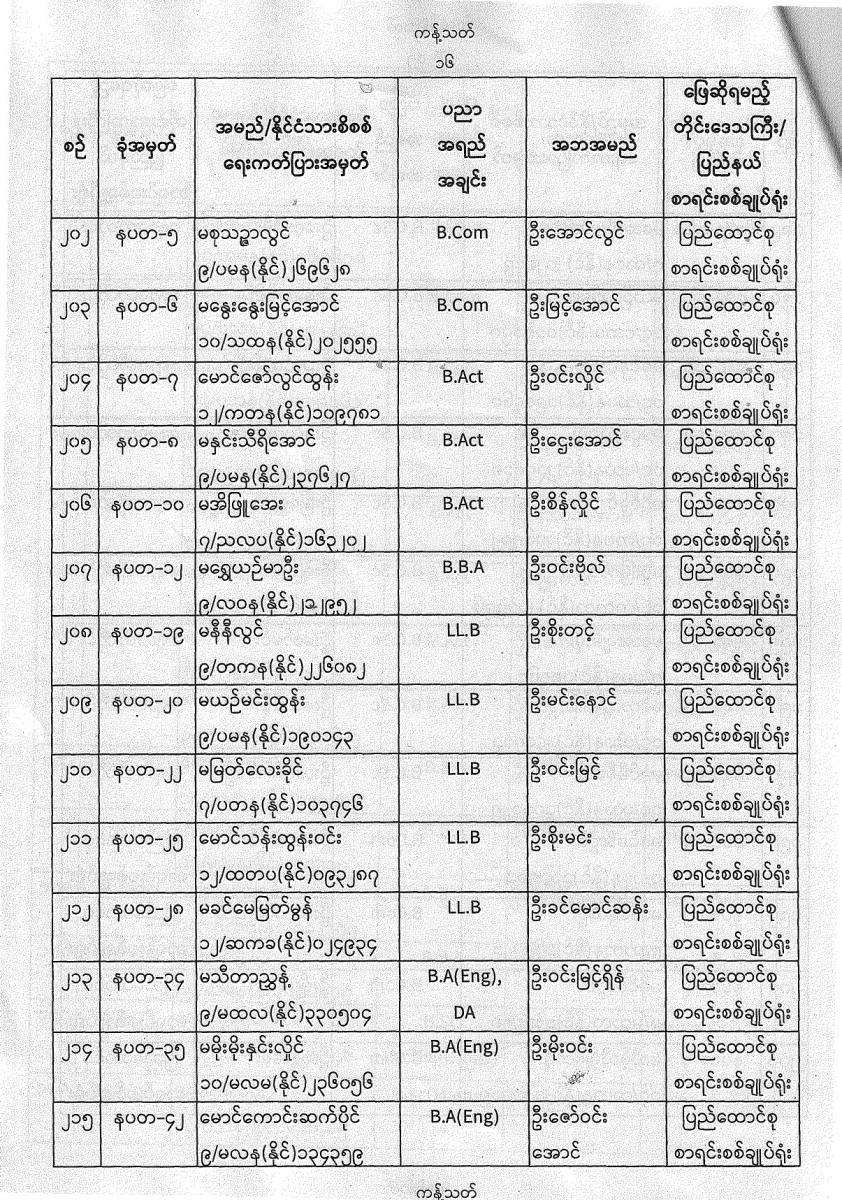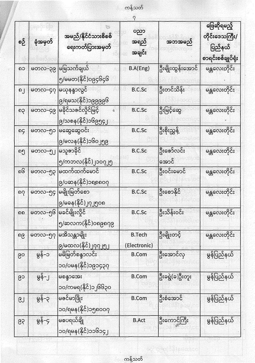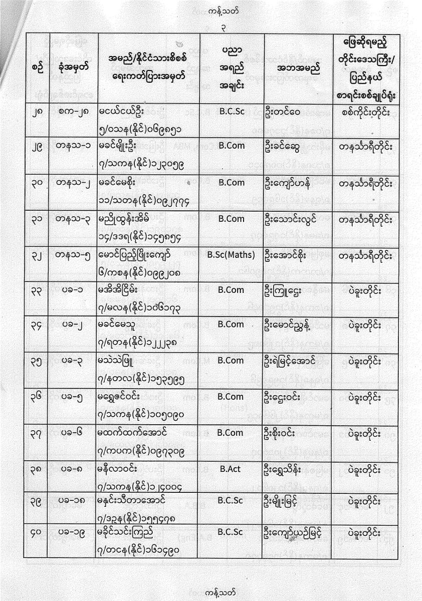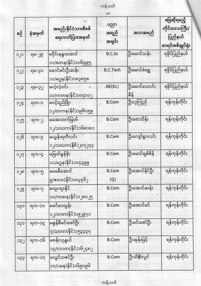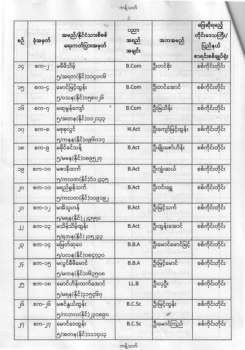 ဒု-စာရင်းစစ်မှူး ရာထူးနေရာအတွက် လူတွေ့ဖြေဆိုခွင့်ရှိသူ အမည်စာရင်းထုတ်ပြန်ခြင်း