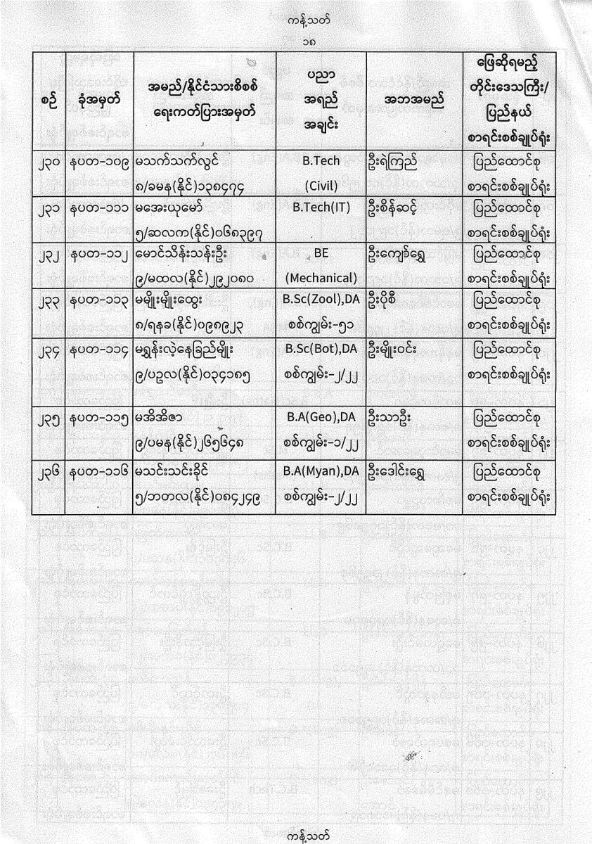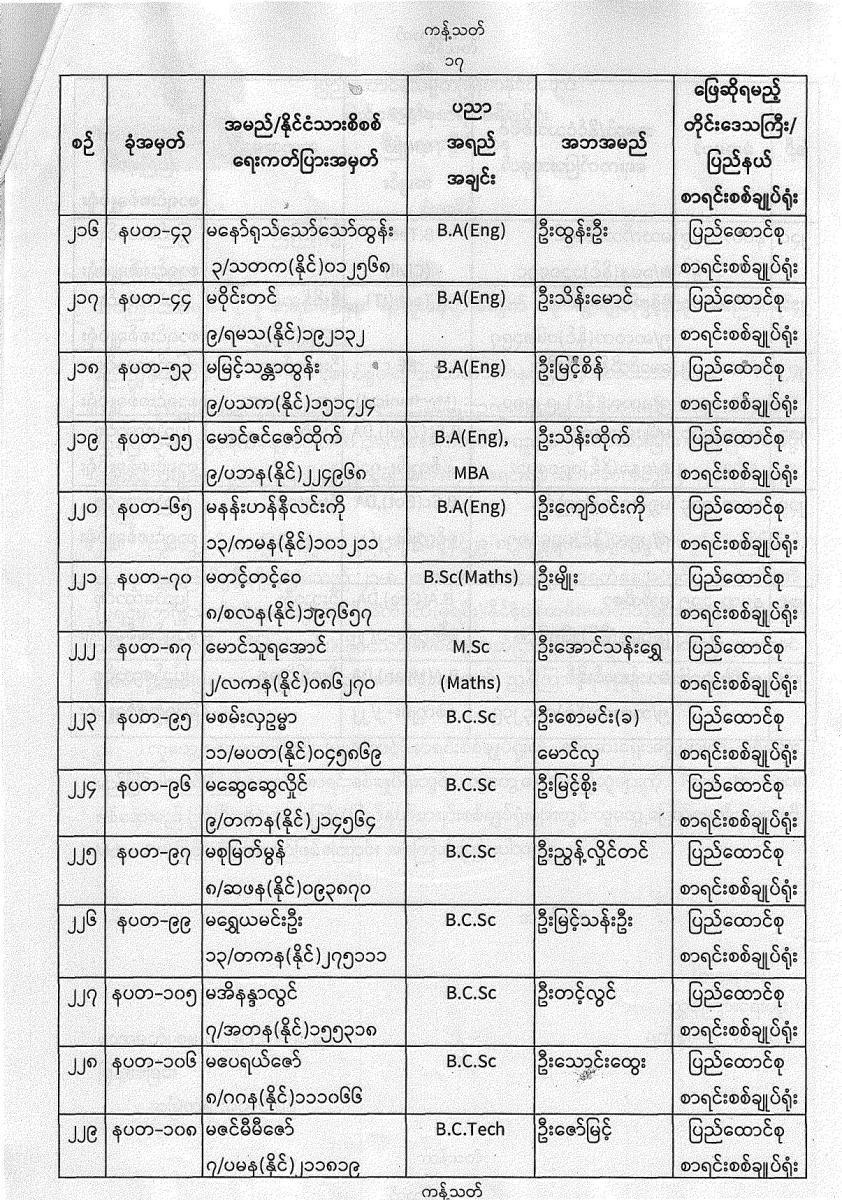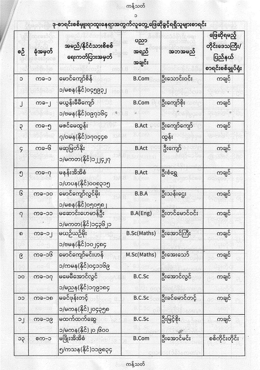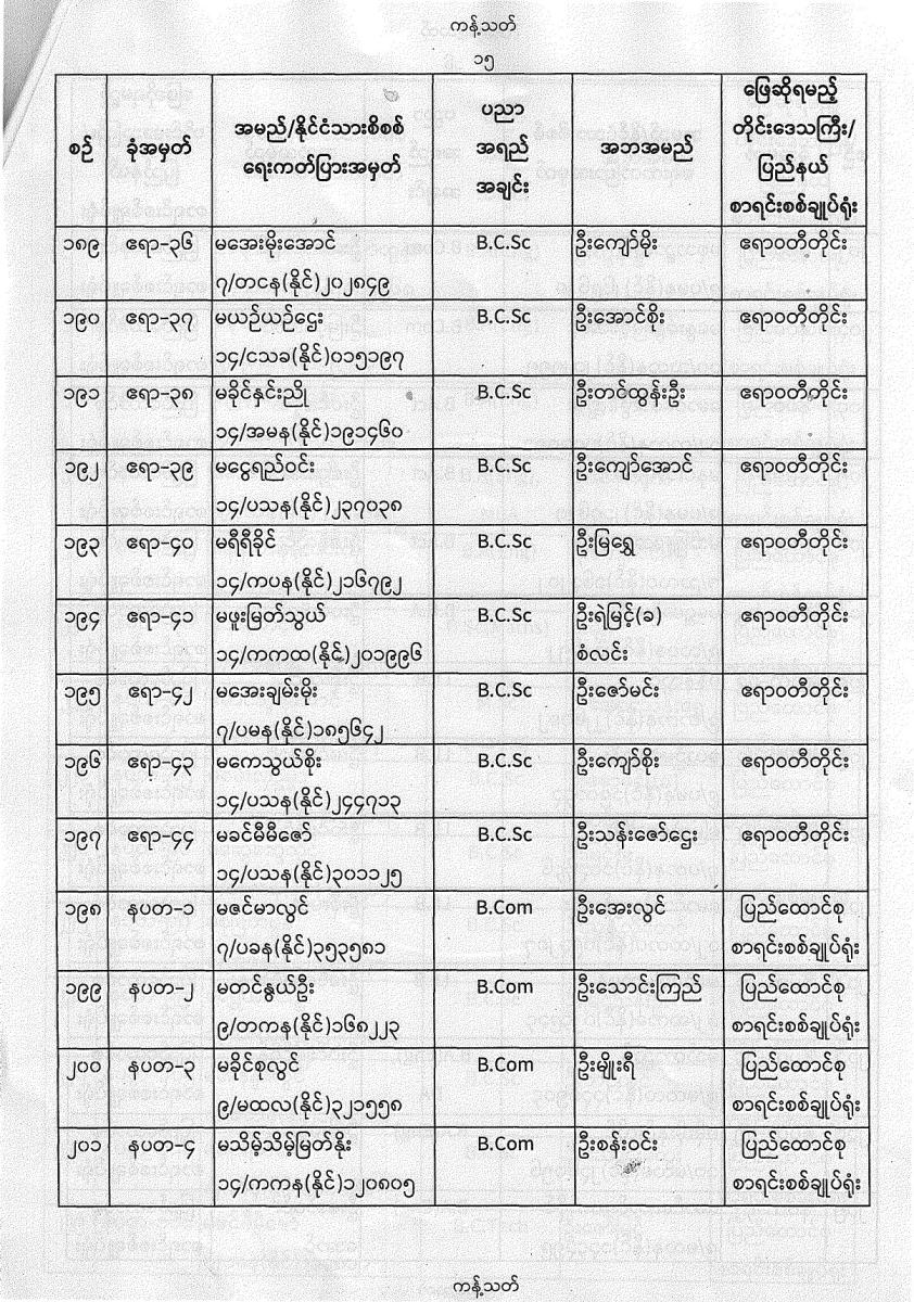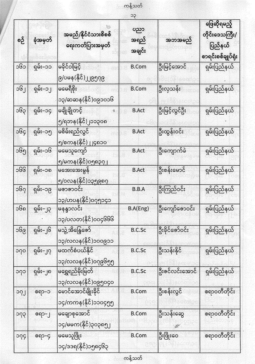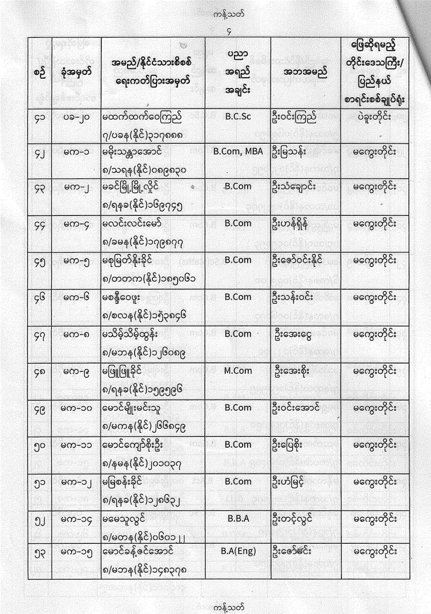 ဒု-စာရင်းစစ်မှူး ရာထူးနေရာအတွက် လူတွေ့ဖြေဆိုခွင့်ရှိသူ အမည်စာရင်းထုတ်ပြန်ခြင်း