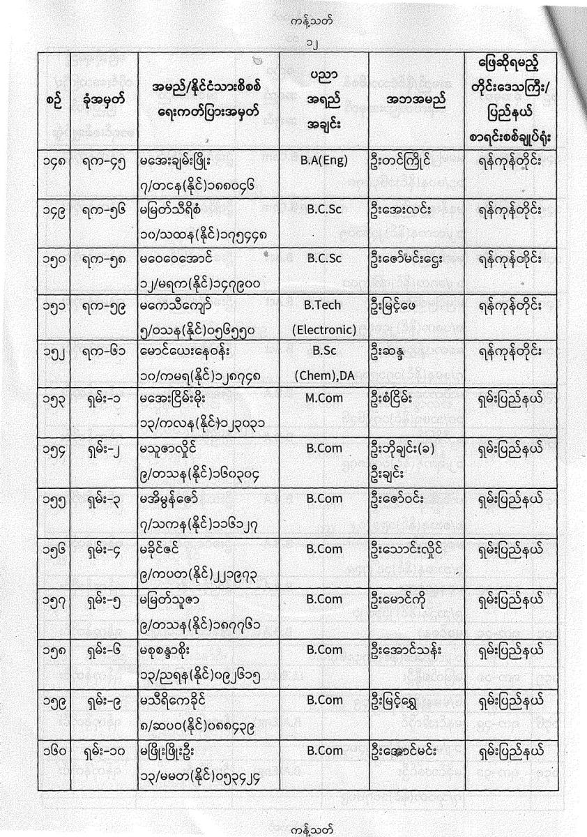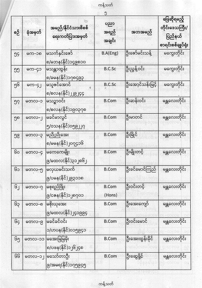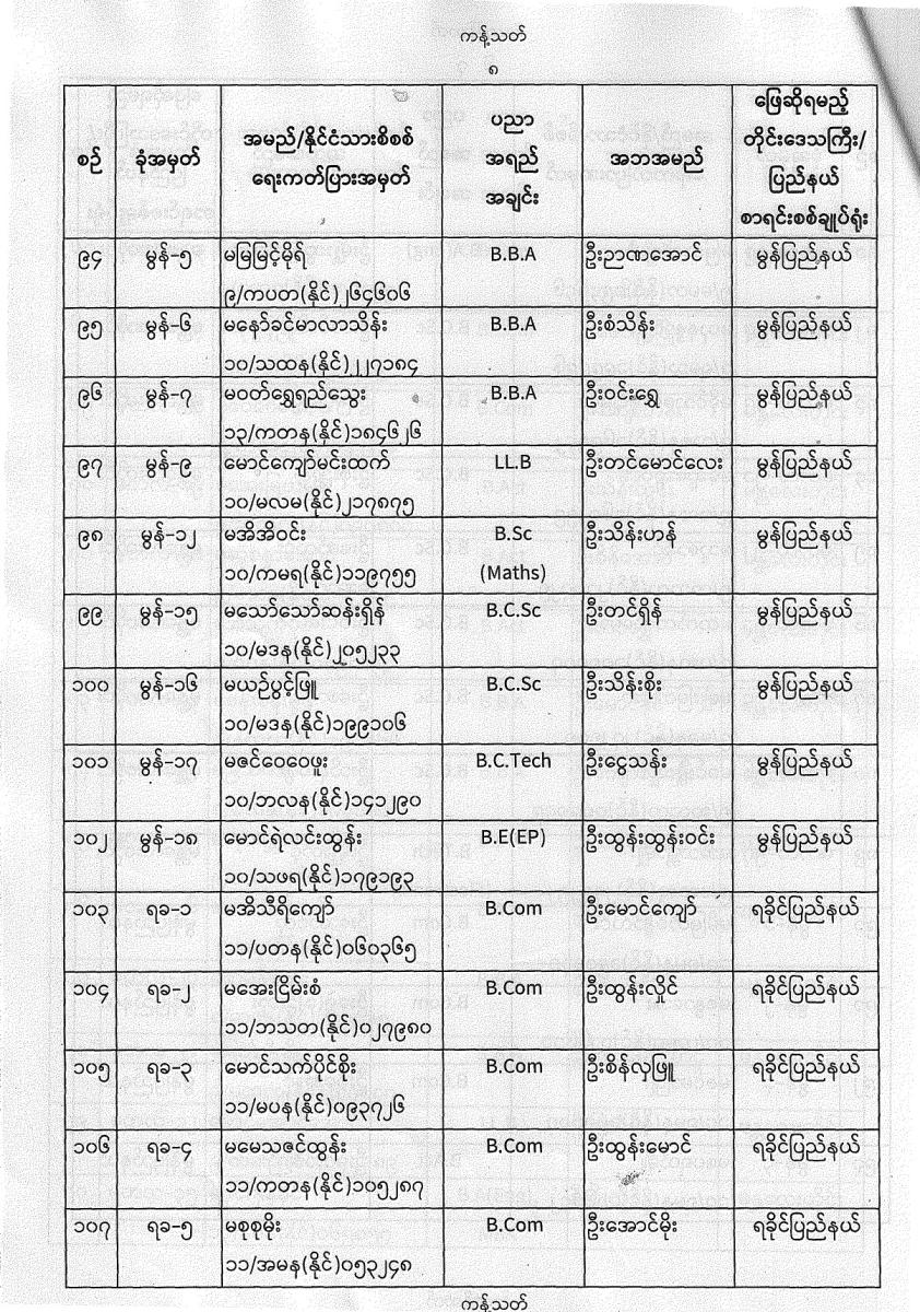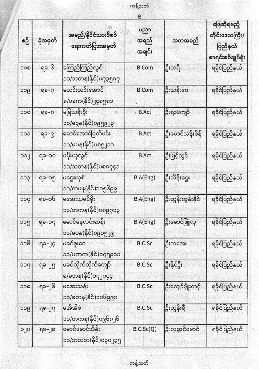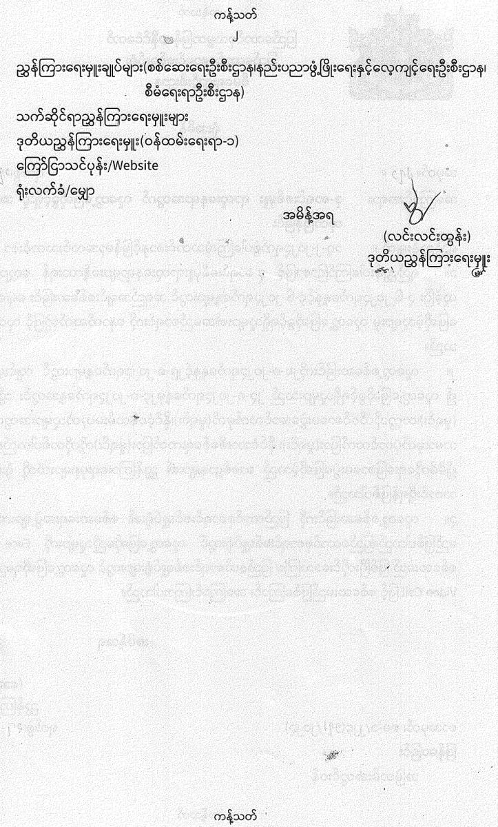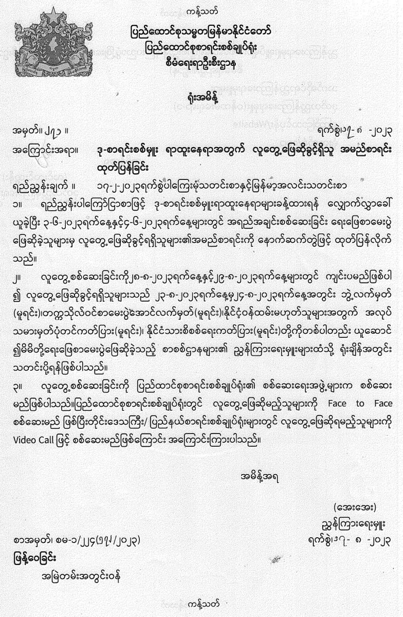 ဒု-စာရင်းစစ်မှူး ရာထူးနေရာအတွက် လူတွေ့ဖြေဆိုခွင့်ရှိသူ အမည်စာရင်းထုတ်ပြန်ခြင်း