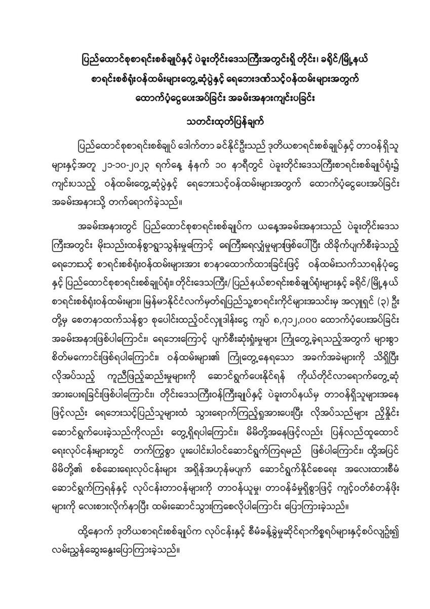 ၂၁-၁၀-၂၀၂၃ ရက်နေ့တွင် ပြည်ထောင်စုစာရင်းစစ်ချုပ်နှင့် ပဲခူးတိုင်းဒေသကြီးအတွင်းရှိ တိုင်း၊ ခရိုင်/မြို့နယ် စာရင်းစစ်ရုံးဝန်ထမ်းများတွေ့ဆုံပွဲနှင့် ရေဘေးဒဏ်သင့်ဝန်ထမ်းများအတွက် ထောက်ပံ့ငွေပေးအပ်ခြင်း အခမ်းအနားကျင်းပခြင်း