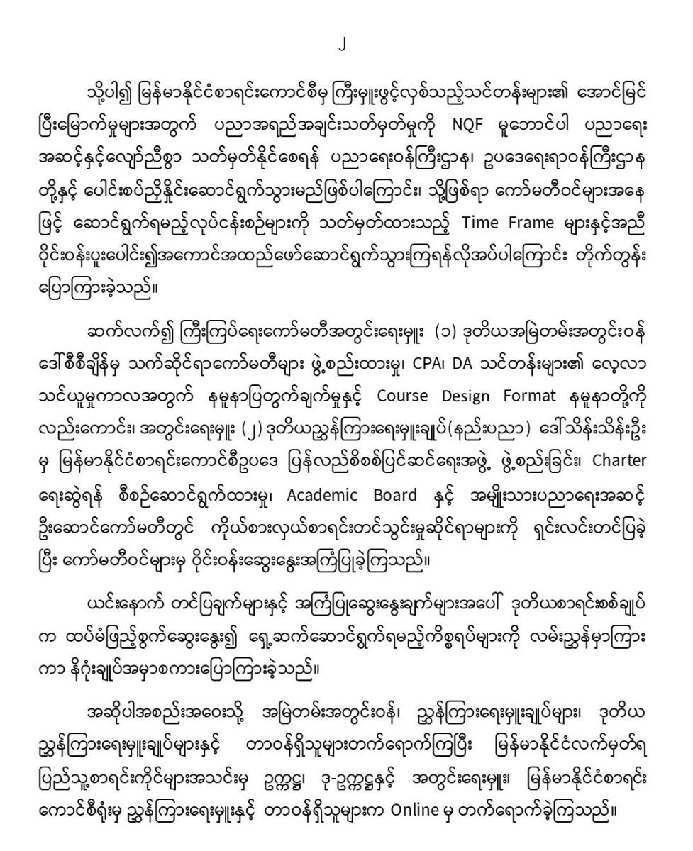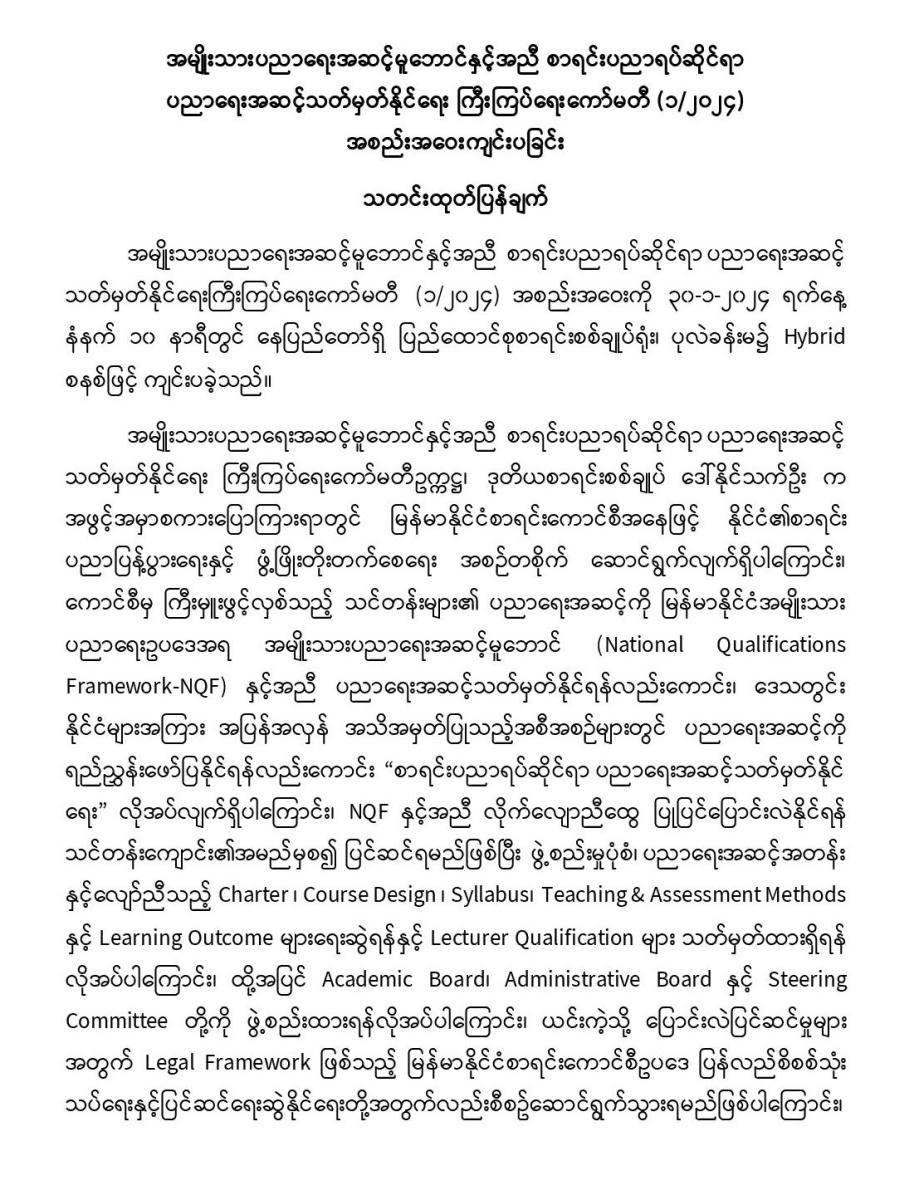 ၃၀-၁-၂၀၂၄ ရက်နေ့တွင် အမျိုးသားပညာရေးအဆင့်မူဘောင်နှင့်အညီ စာရင်းပညာရပ်ဆိုင်ရာ ပညာရေးအဆင့်သတ်မှတ်နိုင်ရေး ကြီးကြပ်ရေးကော်မတီ (၁/၂၀၂၄) အစည်းအဝေးကျင်းပခြင်း