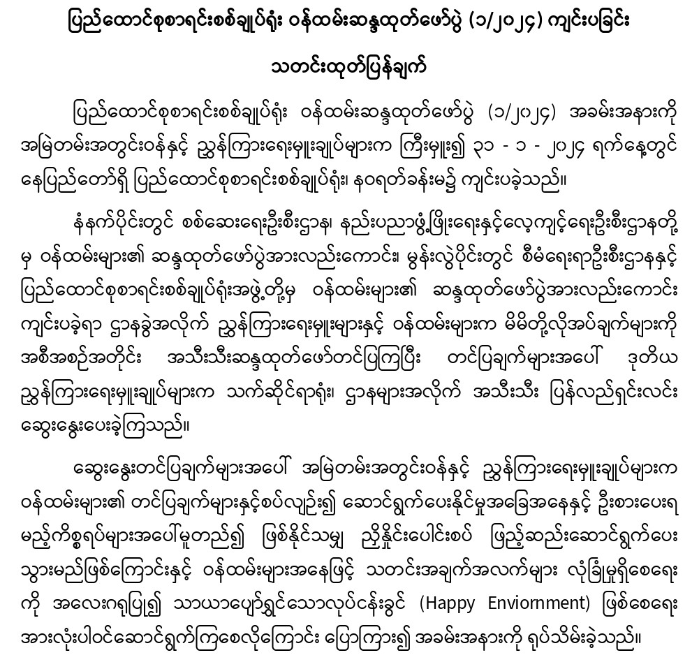 ၃၁-၁-၂၀၂၄ ရက်နေ့တွင် ပြည်ထောင်စုစာရင်းစစ်ချုပ်ရုံး ဝန်ထမ်းဆန္ဒထုတ်ဖော်ပွဲ (၁/၂၀၂၄) ကျင်းပခြင်း