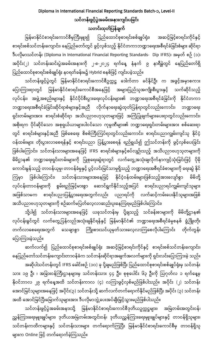 ၂-၈-၂၀၂၄ ရက်နေ့တွင် Diploma in International Financial Reporting Standards Batch-1, Level-II သင်တန်းဖွင့်ပွဲအခမ်းအနားကျင်းပခြင်း