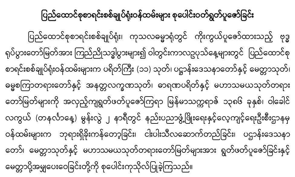 ၂-၉-၂၀၂၄ ရက်နေ့တွင် ပြည်ထောင်စုစာရင်းစစ်ချုပ်ရုံးဝန်ထမ်းများ စုပေါင်းဝတ်ရွတ်ပူဇော်ခြင်း