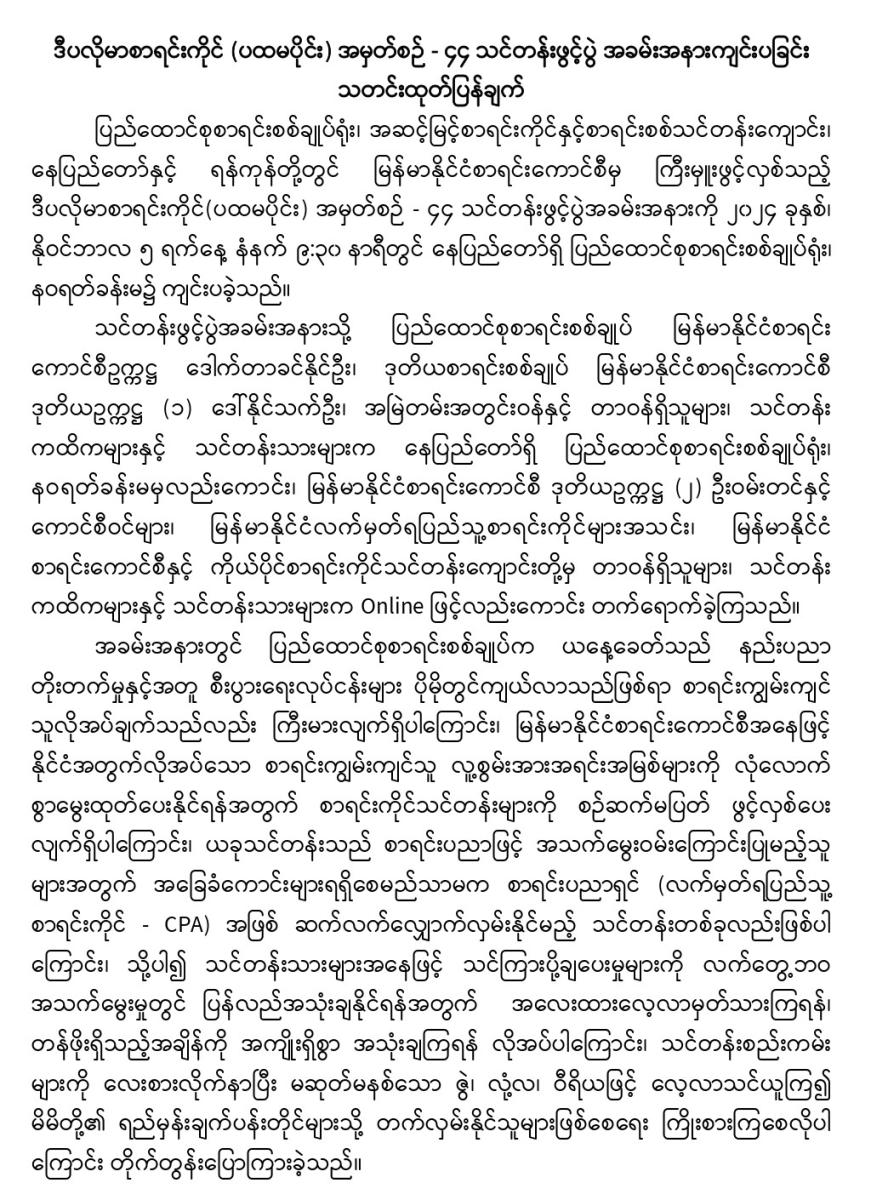 ဒီပလိုမာစာရင်းကိုင် (ပထမပိုင်း) အမှတ်စဉ် - ၄၄ သင်တန်းဖွင့်ပွဲ အခမ်းအနားကျင်းပခြင်း