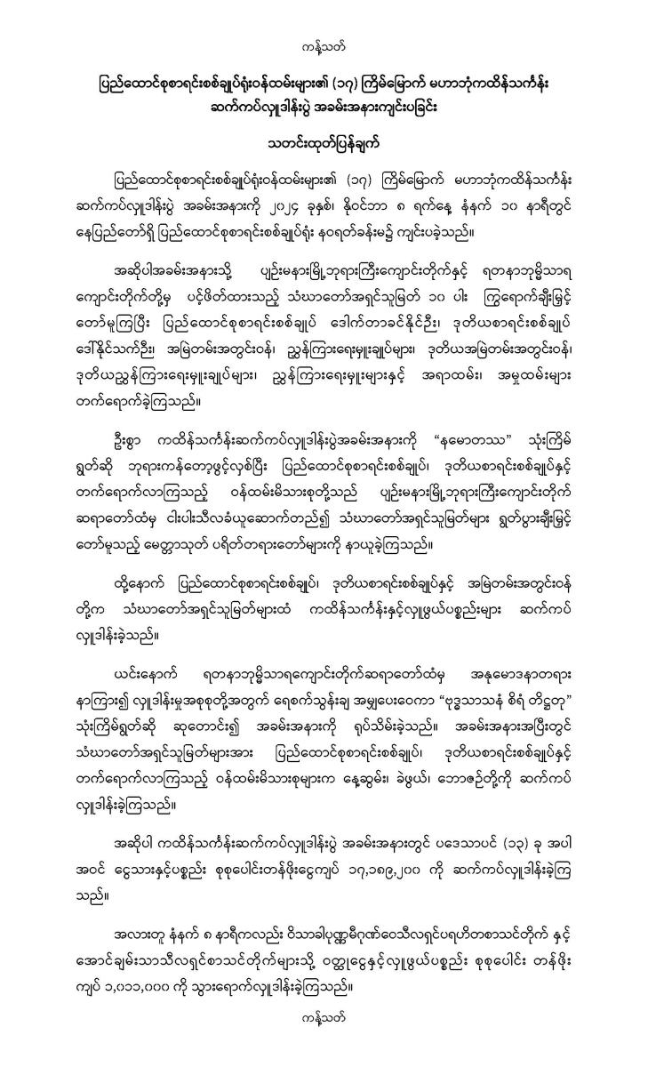 ပြည်ထောင်စုစာရင်းစစ်ချုပ်ရုံးဝန်ထမ်းများ၏ (၁၇) ကြိမ်မြောက် မဟာဘုံကထိန်သင်္ကန်း ဆက်ကပ်လှူဒါန်းပွဲ အခမ်းအနားကျင်းပခြင်း