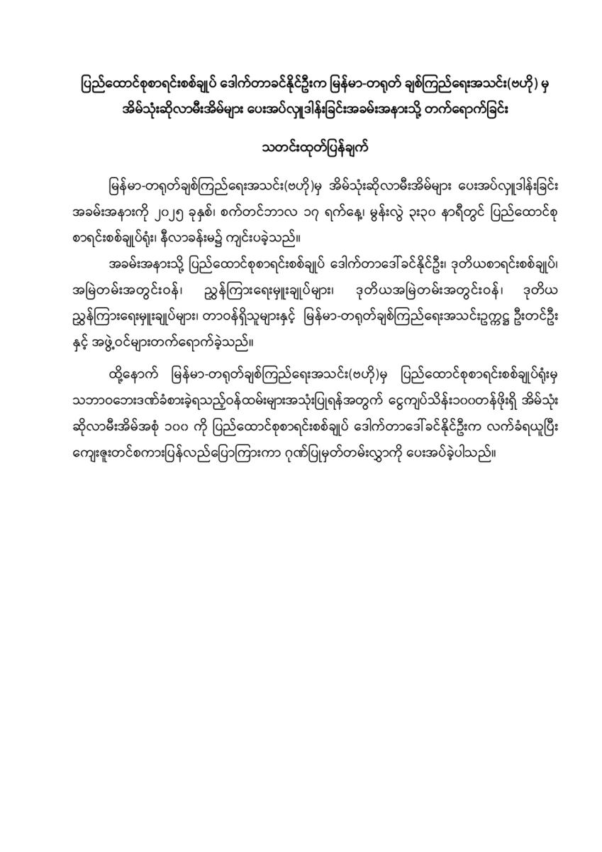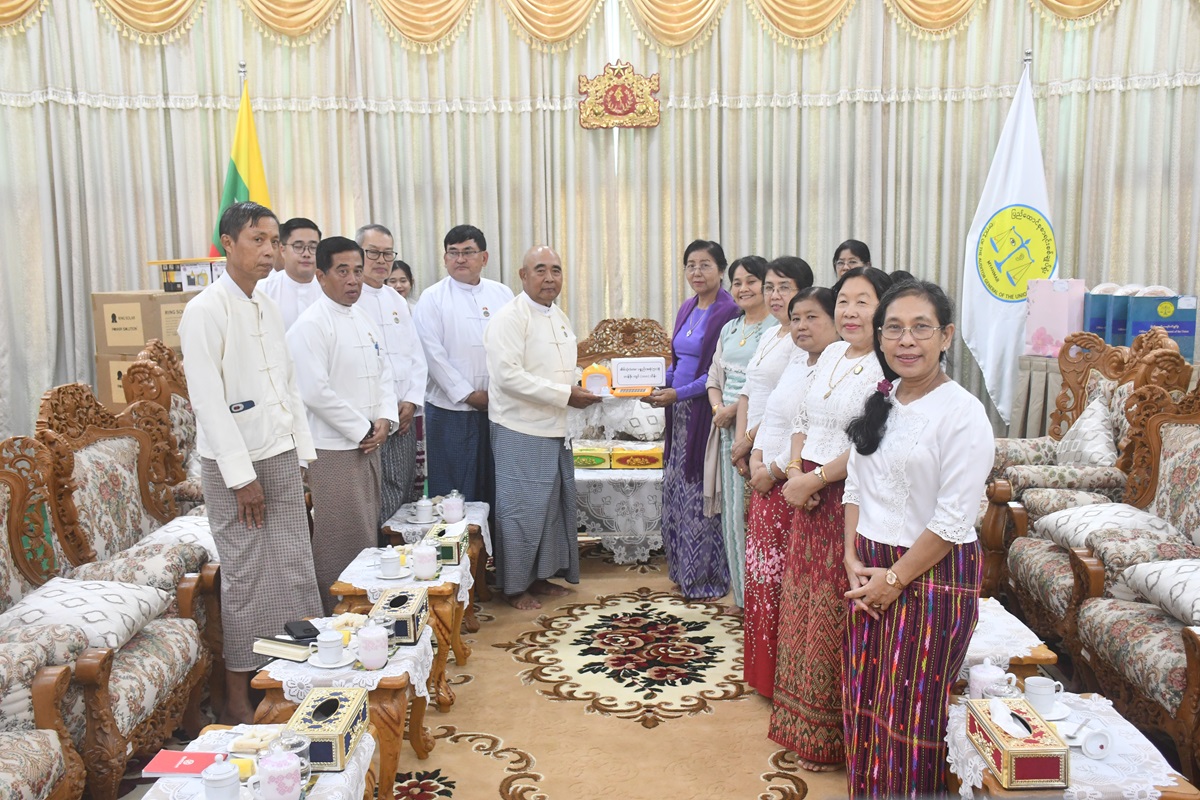 ပြည်ထောင်စုစာရင်းစစ်ချုပ် ဒေါက်တာခင်နိုင်ဦးက မြန်မာ-တရုတ် ချစ်ကြည်ရေးအသင်း(ဗဟို) မှ အိမ်သုံးဆိုလာမီးအိမ်များ ပေးအပ်လှူဒါန်းခြင်းအခမ်းအနားသို့ တက်ရောက်ခြင်း