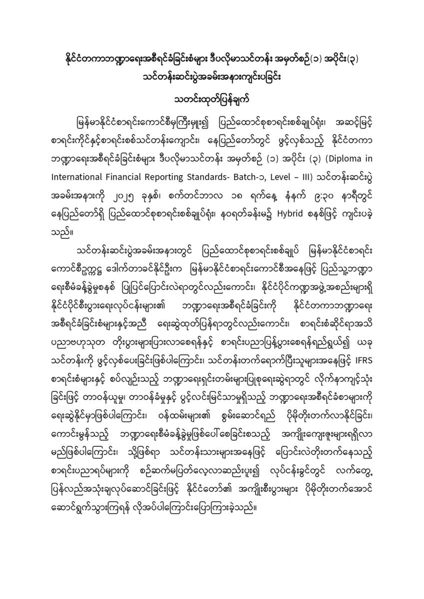 နိုင်ငံတကာဘဏ္ဍာရေးအစီရင်ခံခြင်းစံများ ဒီပလိုမာသင်တန်း အမှတ်စဉ်(၁) အပိုင်း(၃) သင်တန်းဆင်းပွဲအခမ်းအနားကျင်းပခြင်း