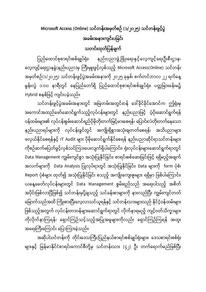 Microsoft Access (Online) သင်တန်းအမှတ်စဉ် (၁/၂၀၂၅) သင်တန်းဖွင့်ပွဲ အခမ်းအနားကျင်းပခြင်း