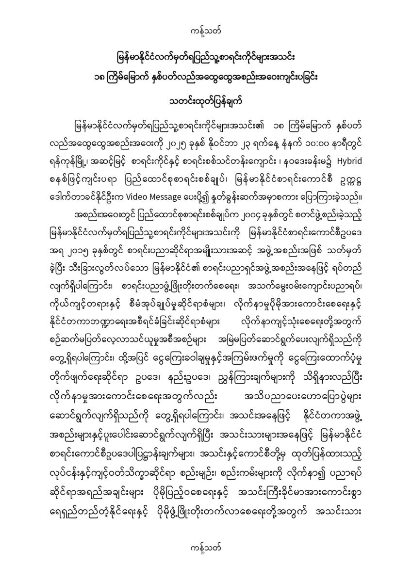 မြန်မာနိုင်ငံလက်မှတ်ရပြည်သူ့စာရင်းကိုင်များအသင်း ၁၈ ကြိမ်မြောက် နှစ်ပတ်လည်အထွေထွေအစည်းအဝေးကျင်းပခြင်း