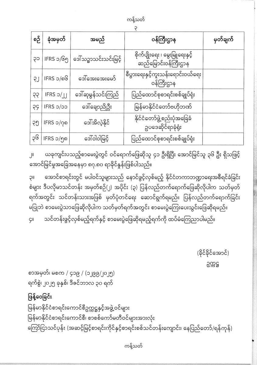 နိုင်ငံတကာဘဏ္ဍာရေးအစီရင်ခံခြင်းစံများ ဘွဲ့လွန်ဒီပလိုမာ အမှတ်စဥ်(၁) ရရှိသူများစာရင်း